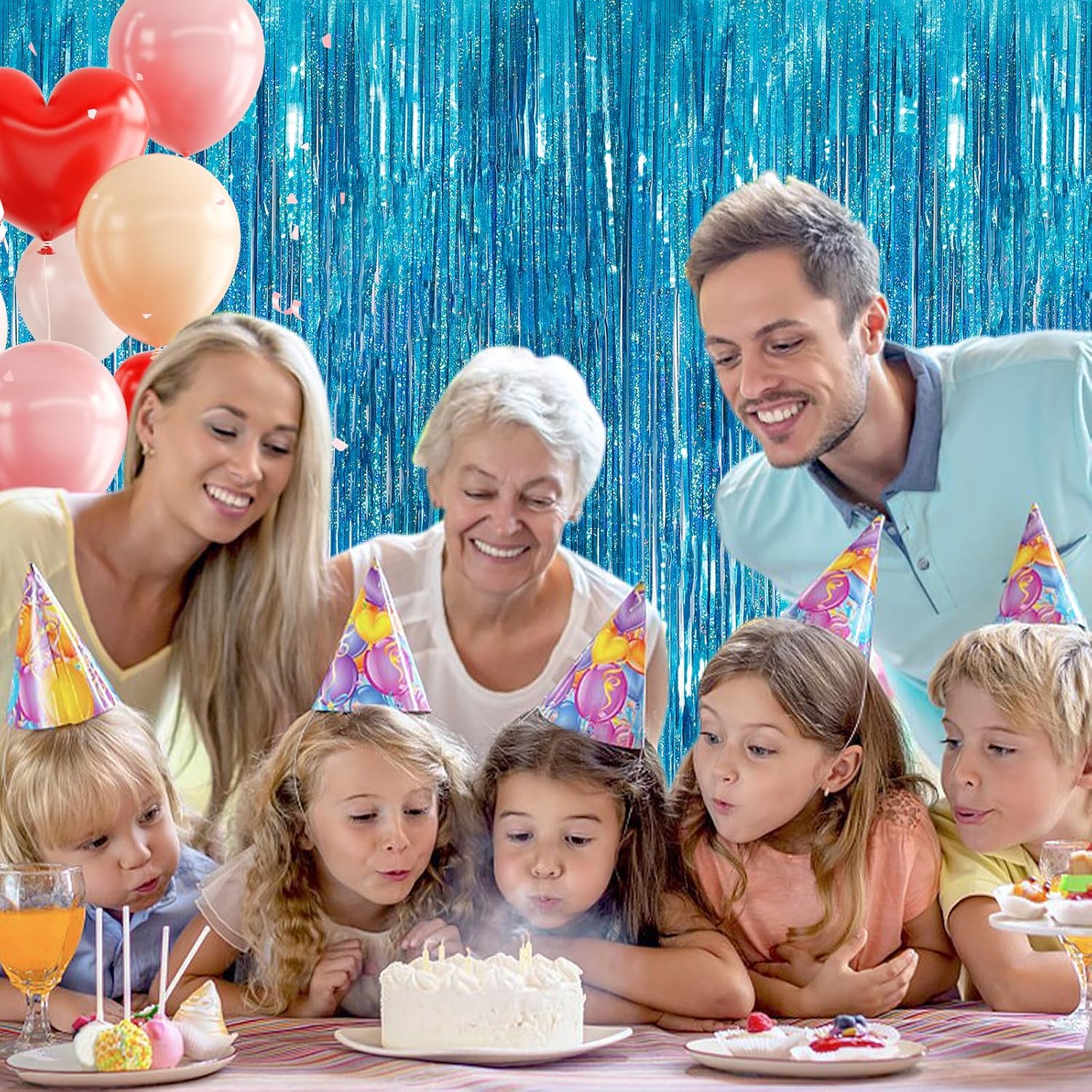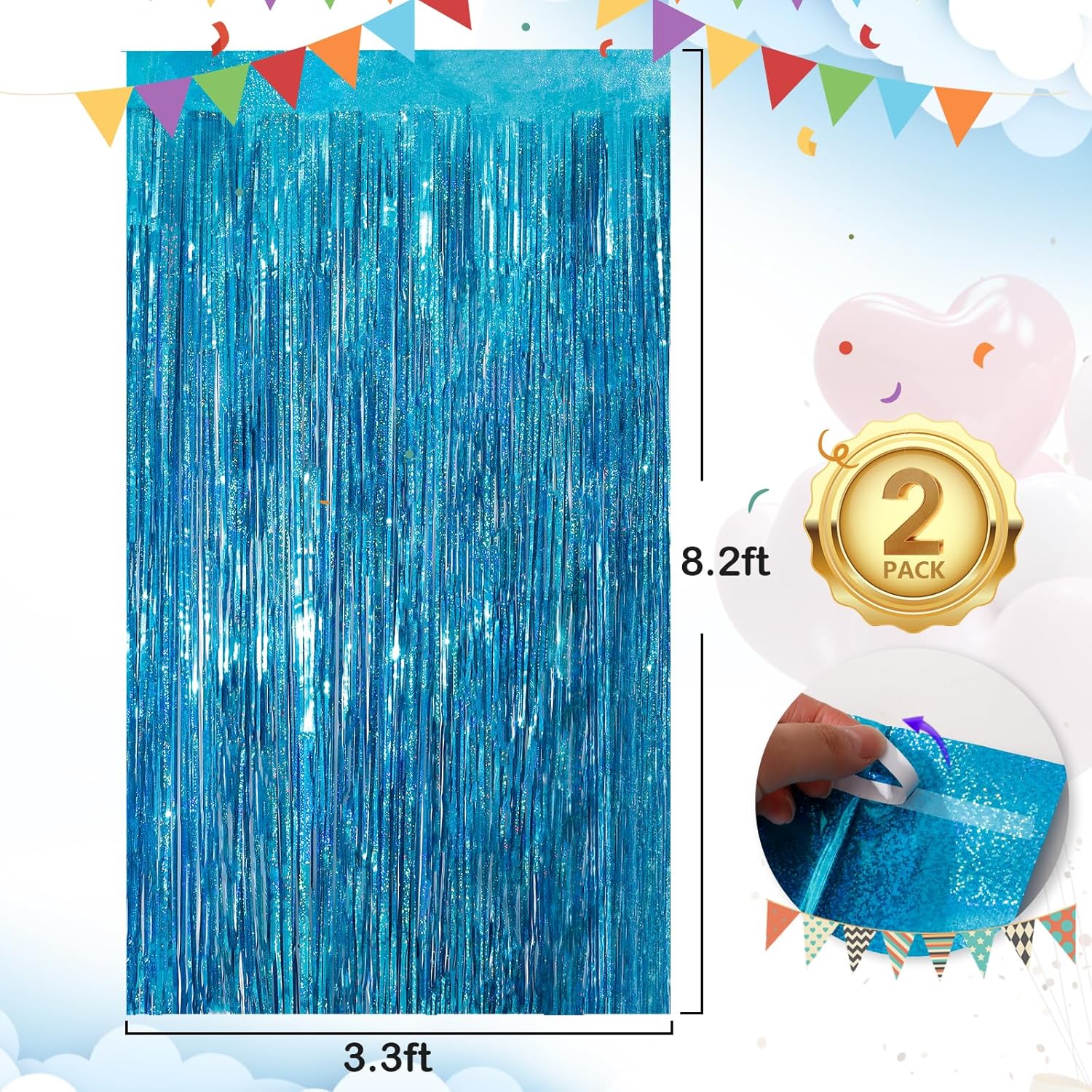 2Pack 3.3x8.3Ft Blue Foil Fringe Streamers Curtain Metallic Foil Tinsel Fringe Door Streamers for Birthday Wedding Xmas Party Photo Iridescent Blue Streamers Ocean Summer Party Decors Streamers