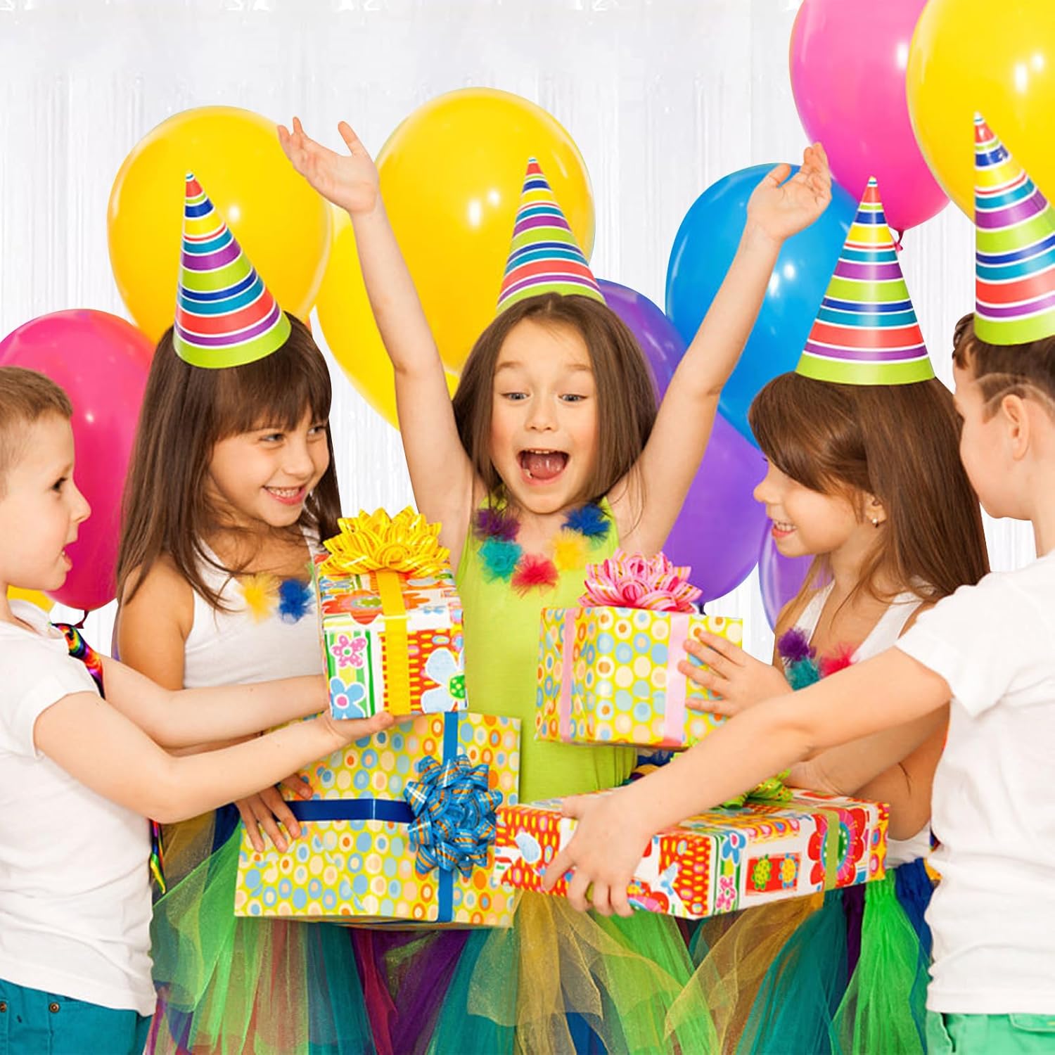 • {Wide Application}: 10 x Foil Fringe Curtains. Our foil curtain backdrop is widely used for stage background, party photo backdrop, window or door frame decoration, etc. The shiny streamer creates a great decorative atmosphere!