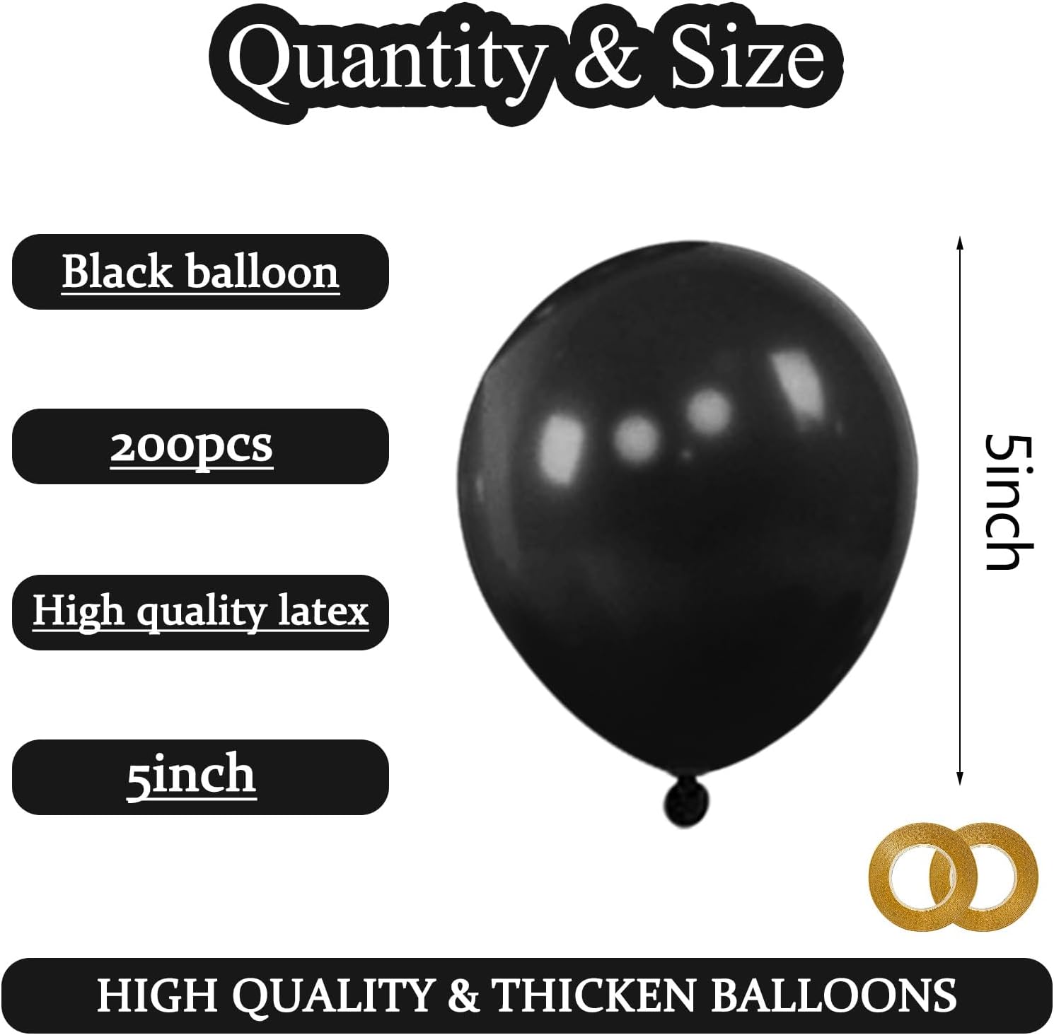 KAWKALSH 200pcs Black Balloons 5 Inch, Small Mini Latex Balloons for Party Birthday Baby Shower Anniversary Festival Arch Garland Decoration