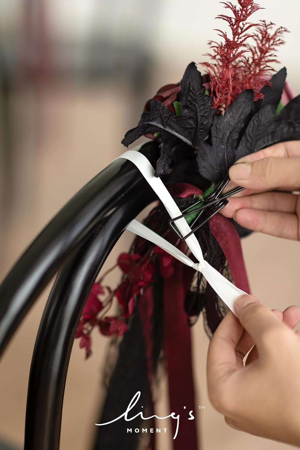 • WEDDING AISLE DECOR DETAILS: 8 pcs pre-made fake aisle marker pew flowers and 8 double-color ribbon card sets, which helps to create your romantic autumn, burgundy black or winter wedding. Aisle suitable for four rows of guest seating. If there are more queues, it is recommended to purchase multiple copies.