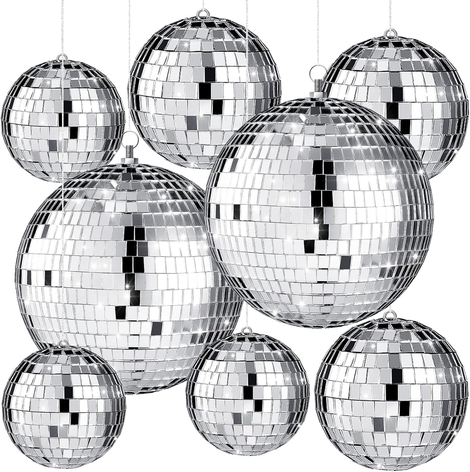 Haull 8 Pcs Large Disco Ball Set Silver Mirror Disco Reflective Ball with Hanging Ring Party Ornament Decoration for Stage Club Ballroom Dance Hall Wedding Prom Props(3'', 4'', 6'')