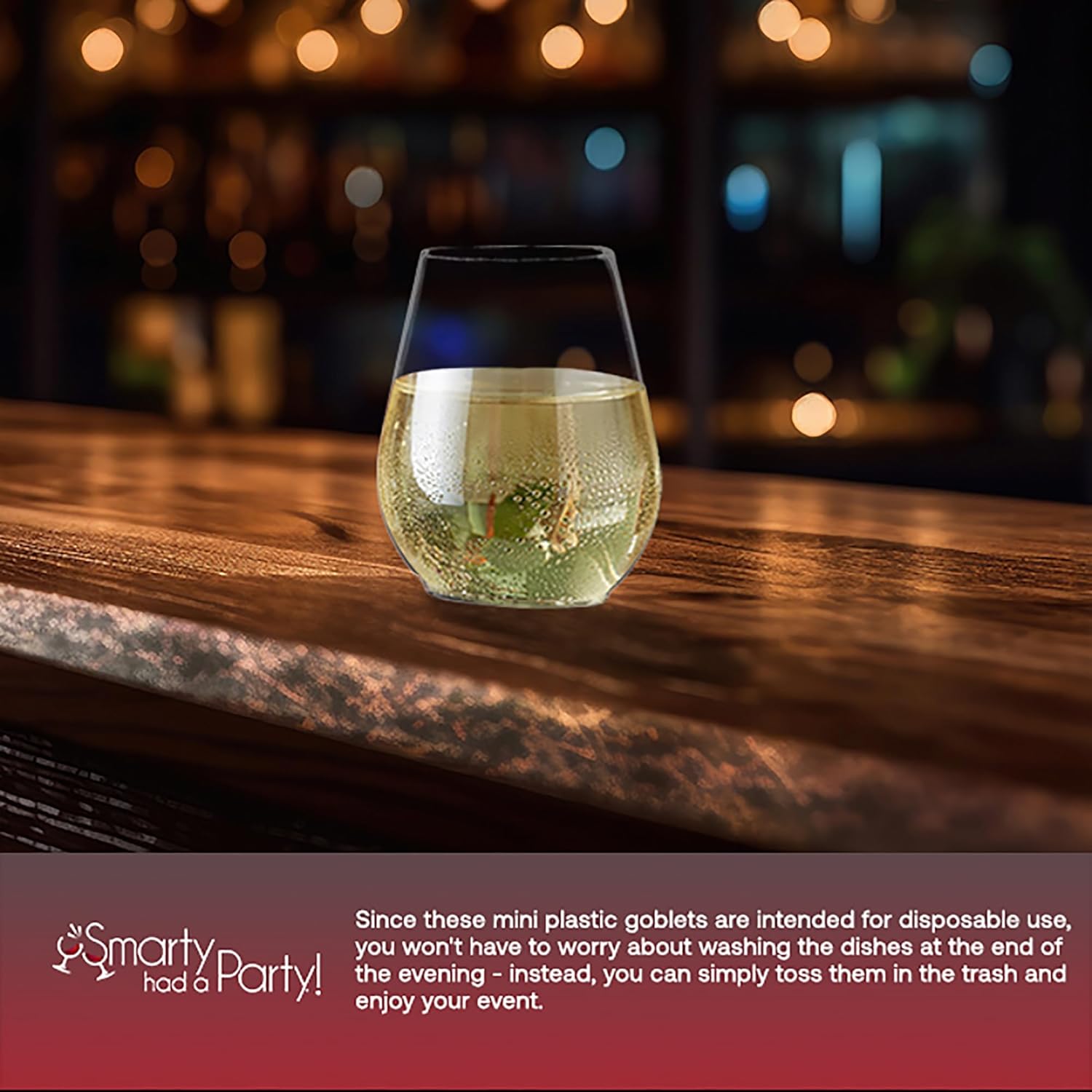 Smarty Had A Party 4 oz Clear Stemless Plastic Mini Goblets, Unbreakable Disposable Wine Goblets for Weddings, Parties, and Events, Bulk Drinkware for Celebrations (80 Count)