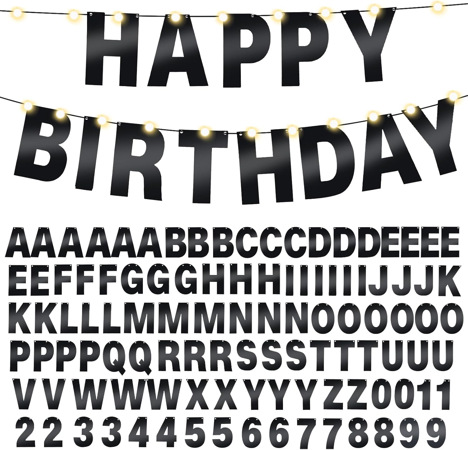TaoBary 112 Pcs DIY Letter Custom Banner Glitter Customizable Banner Kit Including 107 Letters and Numbers 3 Rope for Valentine Birthday Party(Bright Black)