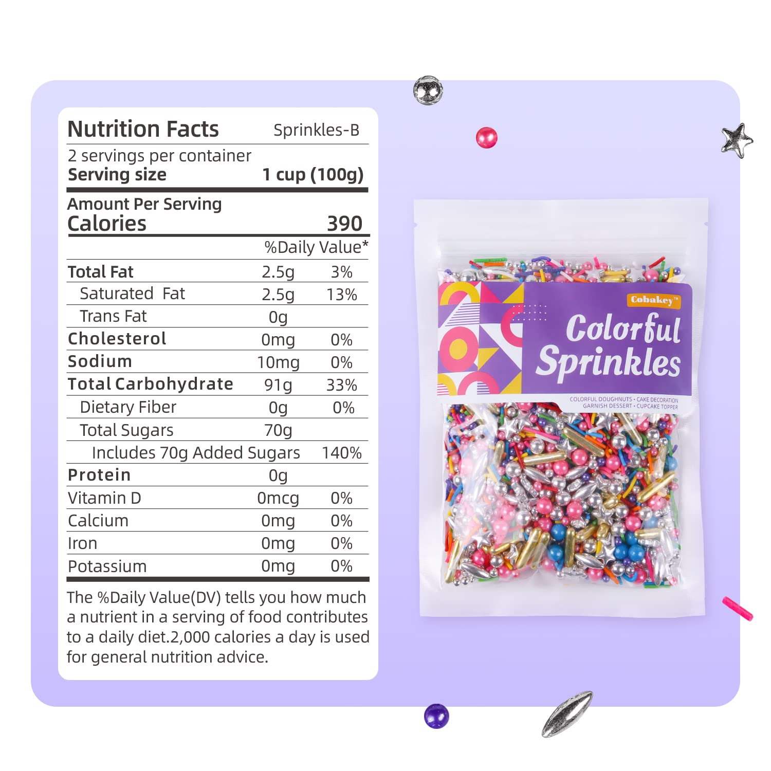• RAINBOW BEAM SPRINKLE MIX - Sprinkles is a hyper whirlwind of beautiful colors and cute sugar pearls shapes, including mini stars, jumbo Rice sprinkles and crisp jimmies, sugar rods!