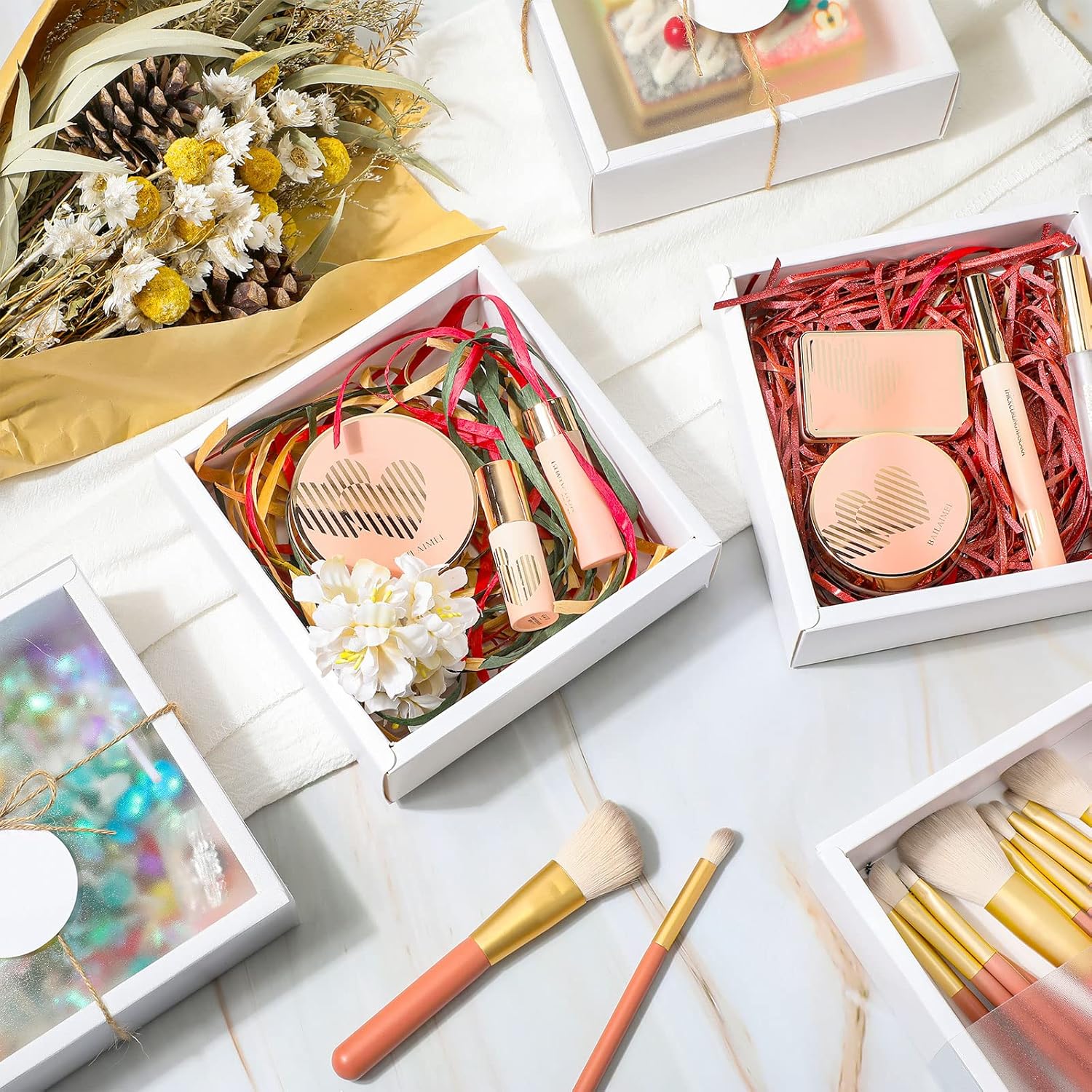 • Portable and Compact: the gift packaging boxes are about 6.5 x 6.5 x 2 inches/ 16.4 x 16.4 x 5 cm in outer size, the inner size measuring approx. 5.75 x 5.75 inches/ 14.6 x 14.6 cm; This size is suitable for you to store some small cakes, desserts, candies or other small gifts