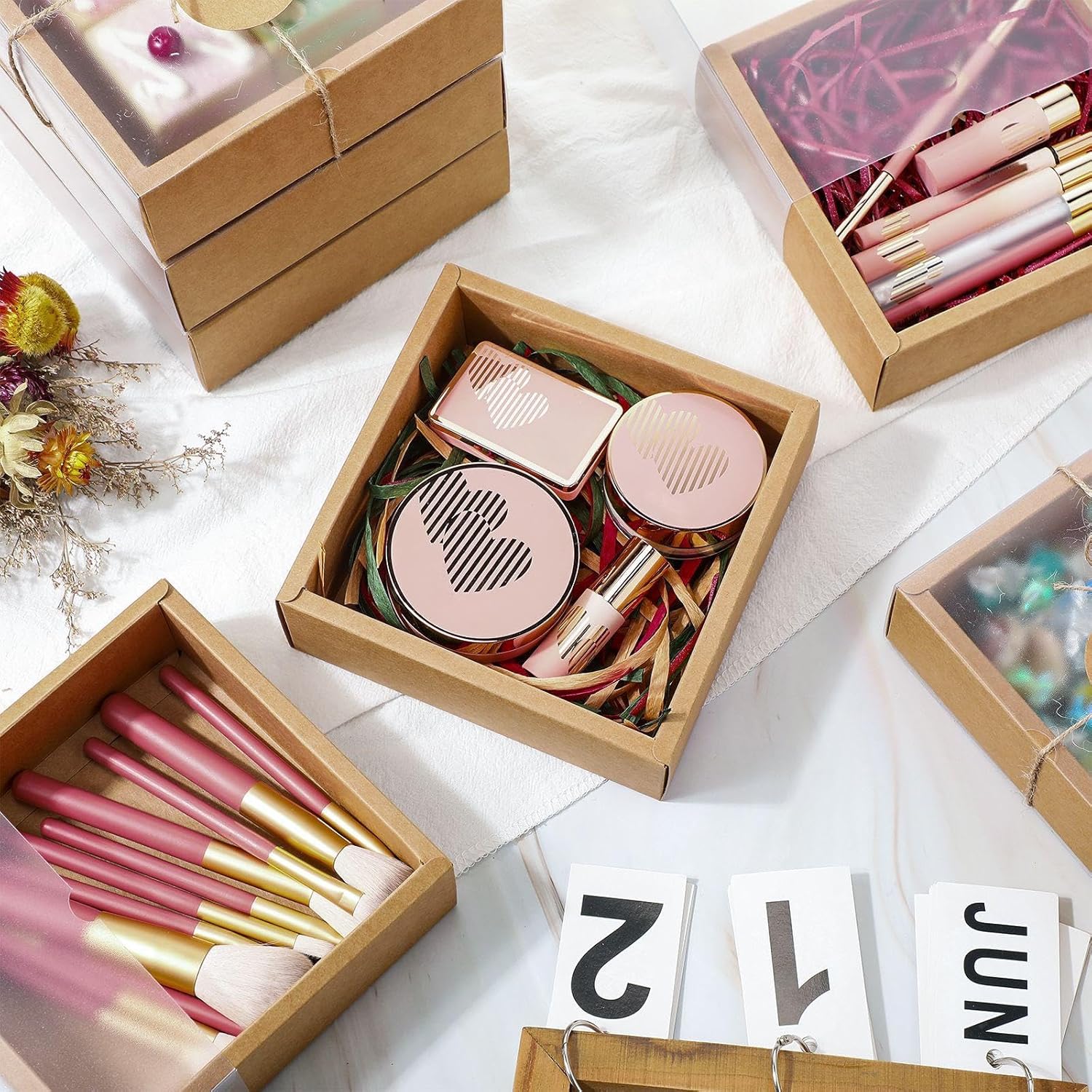 Roowest 50 Sets Kraft Soap Boxes Rectangle Packaging Box with Window Homemade Gift Box with Blank Tags and Jute String for Jewelry Candy Wrapping Party Favor(6.5 x 6.5 x 2 Inch,Kraft Color)