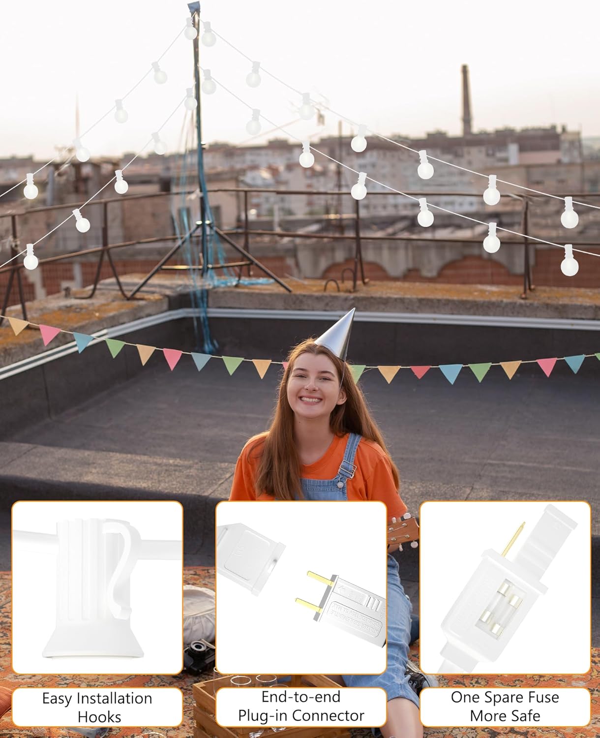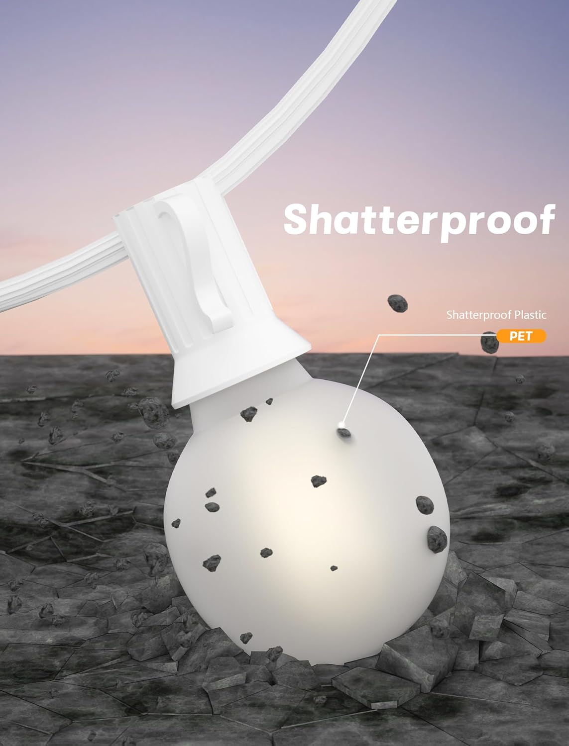 • Waterproof & Durable: With a fully sealed and waterproof design E12 base, G40 globe string lights can withstand rainy, windy, or damp climates, making sure that it is durable for long term use