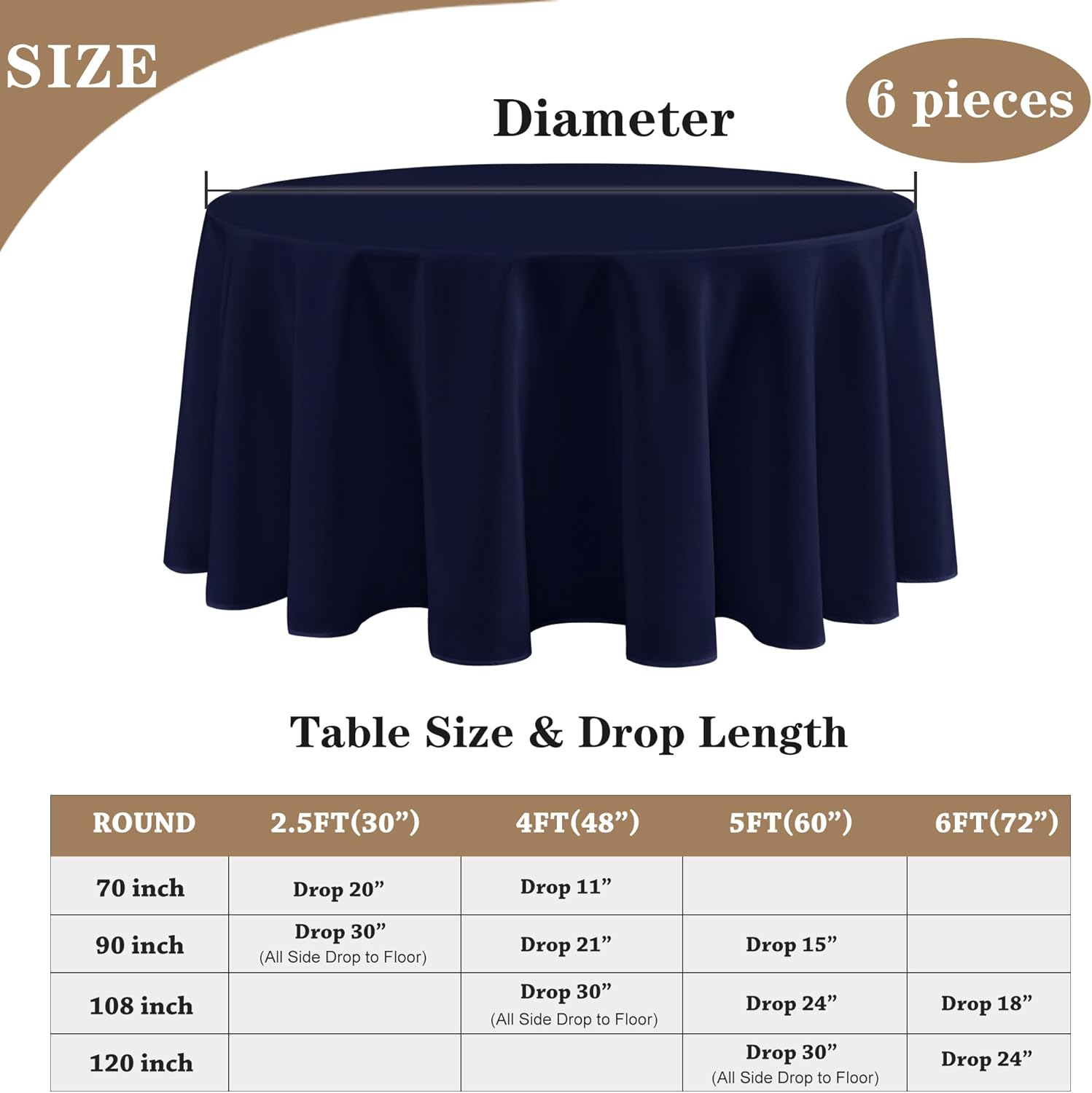 • Versatile Size Options: Whether you have a rectangular, square, or round table, we've got you covered. Each package includes 6 pack of table clothes in various sizes to fit your needs perfectly.