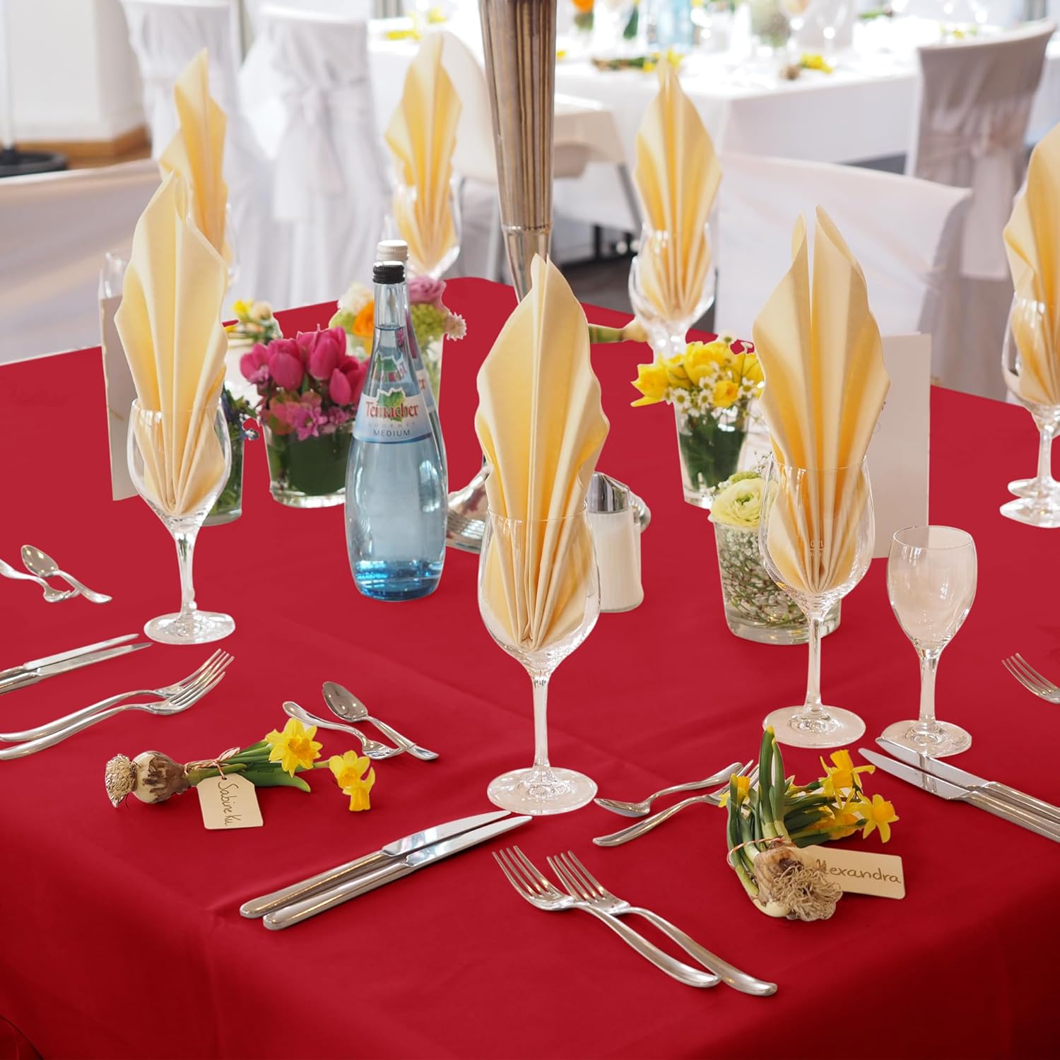 • Easy Care Instructions: Our table covers are machine washable for quick and convenient cleaning. Simply tumble dry on low and use low heat ironing to maintain their pristine appearance.