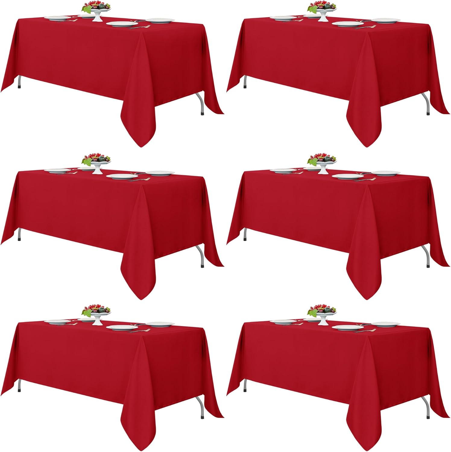 Fitable Red Tablecloths for Rectangle Tables, 6 Pack - 70 x 120 Inches - Reusable and Washable Table Clothes for 6-8 Ft Tables, Polyester Fabric Table Covers for Wedding, Party, Banquet
