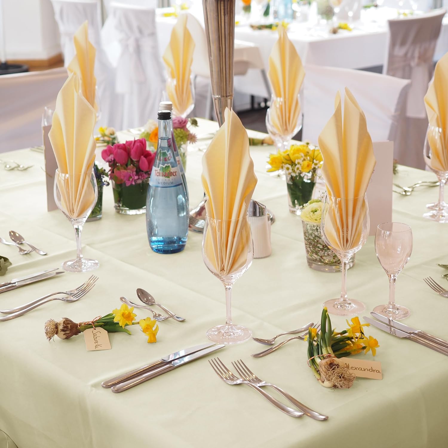 • Easy Care Instructions: Our table covers are machine washable for quick and convenient cleaning. Simply tumble dry on low and use low heat ironing to maintain their pristine appearance.