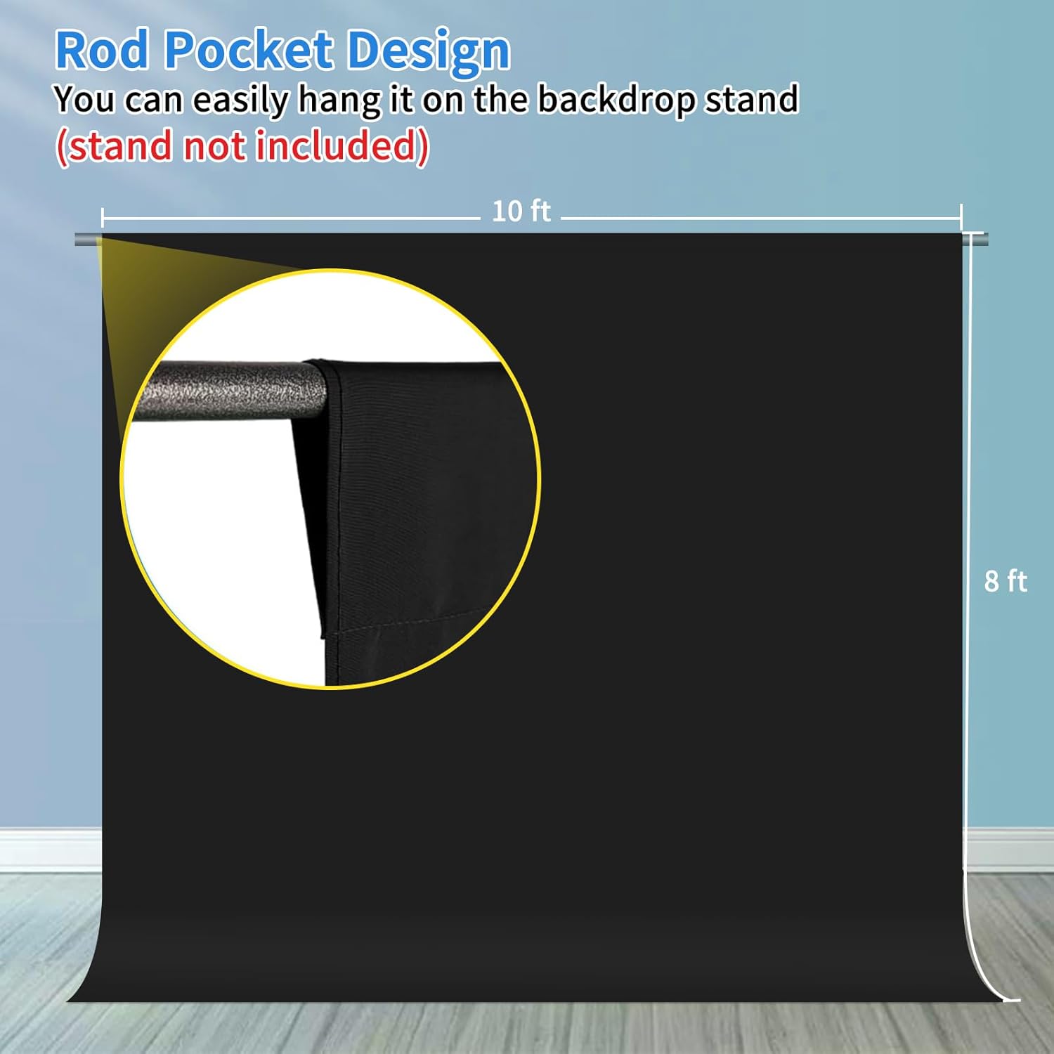 HEMMOTOP Black Backdrop 10x8 ft, Black Photo Backdrops for Photoshoot, Polyester Fabric Background Curtain Screen Seamless for Party, Photos, Photography, Birthday, Wedding (Backdrop only)