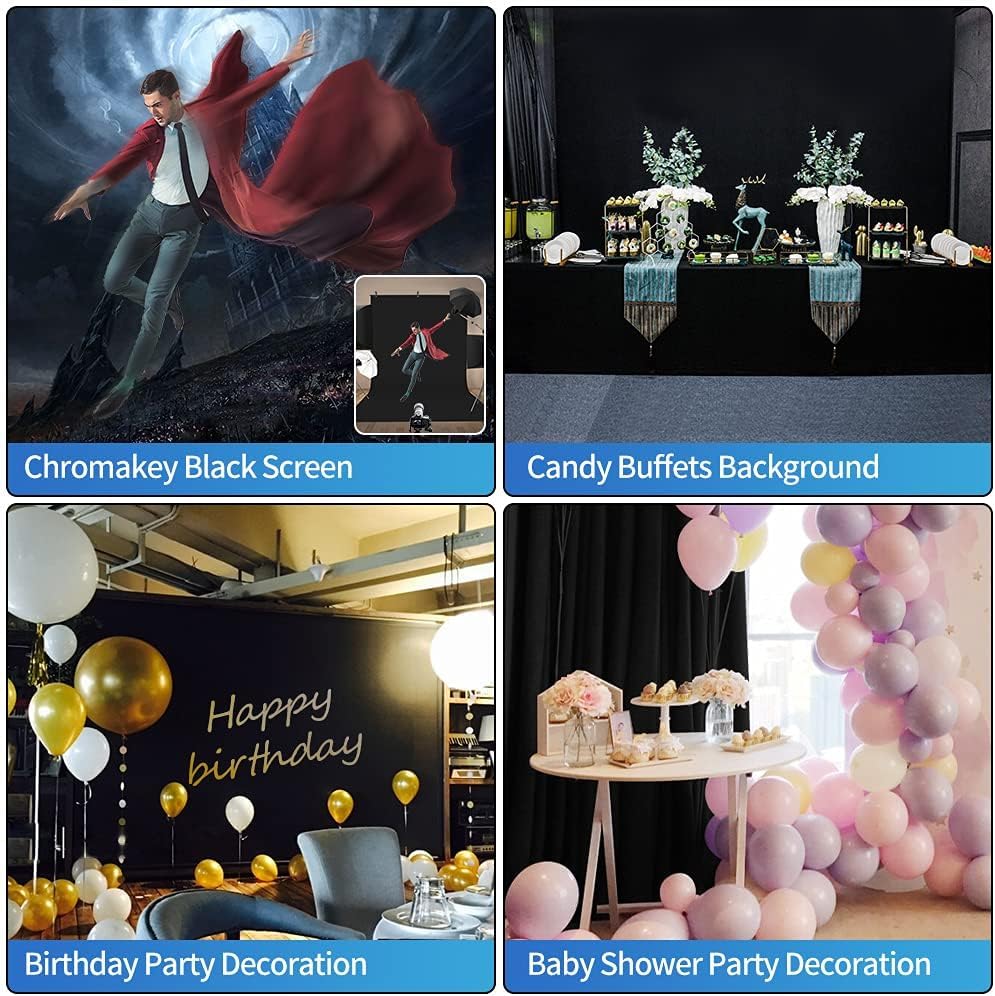• Wide Use: Black backdrop cloth is also perfect for weddings, receptions, parties, bridal and baby showers, birthdays, candy buffets, ceremony, arch stages photography, photo booths, video broadcast, interview and more.