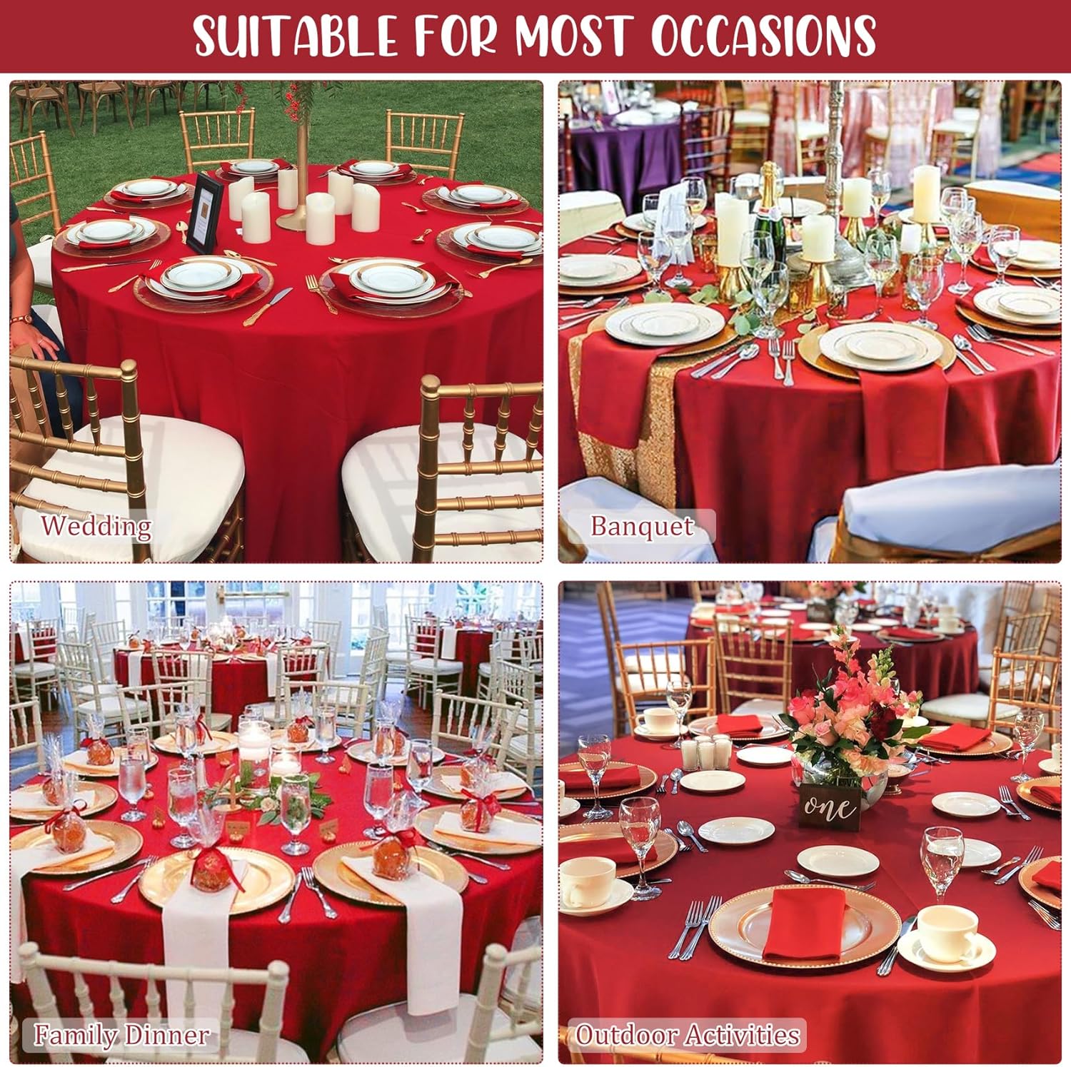 • Package Include: you will get 8 pieces red polyester round tablecloth, enough quantity is suitable for wedding banquets and various parties, the size of each tablecloth is approximately 70 inches / 178 cm, which is large enough to cover 30" or 48" round tables, classic in color and exquisite in design, the solid color makes them suitable for various occasions, instantly heightening the elegance of your table.