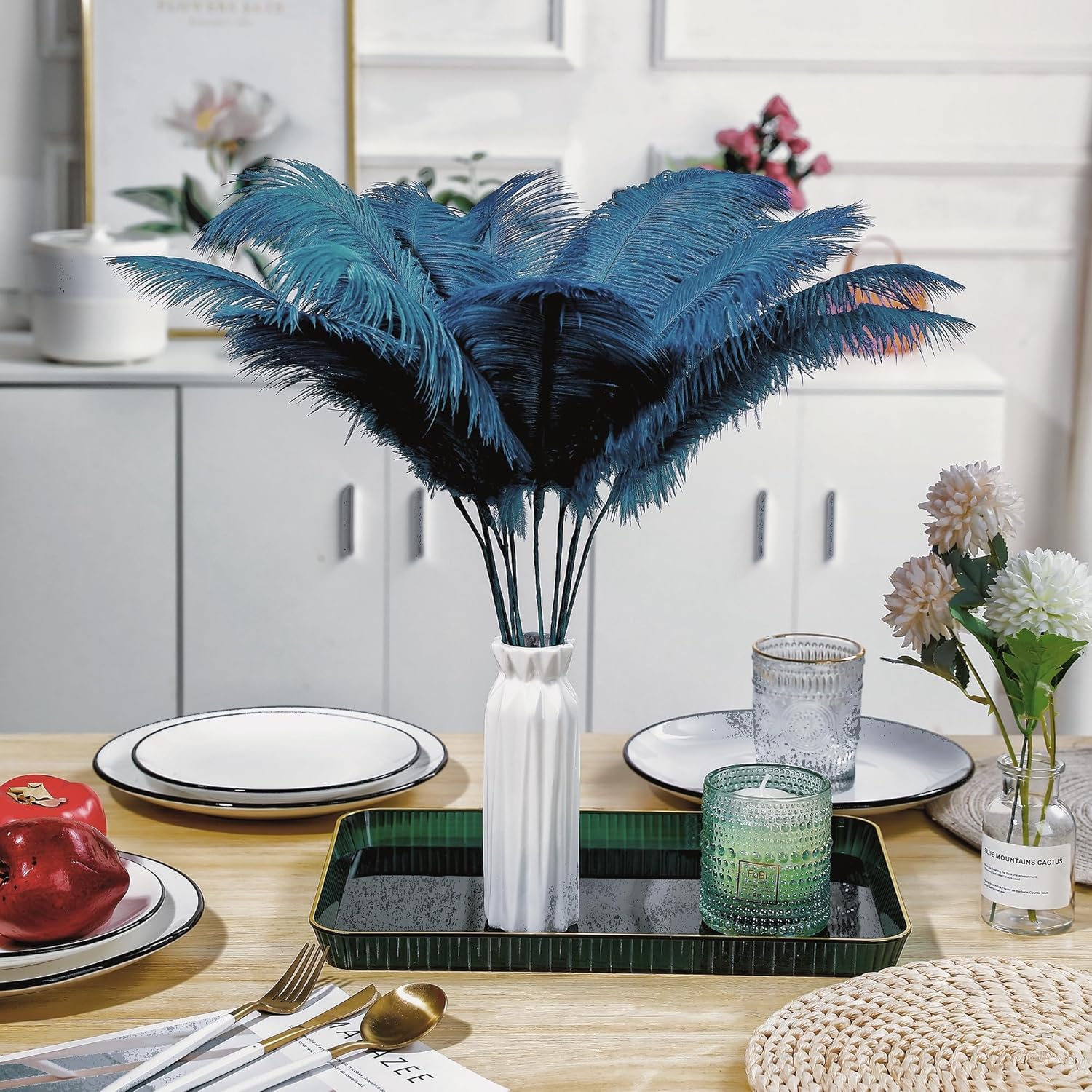 • 22inch Ostrich Feathrs Kit: 20pcs 10-12 inches turquoise ostrich feathers, 20 pcs 10 inches long iron wire, and a 15m tape in the same color with the feather. Rich set content to meet your decoration and use needs