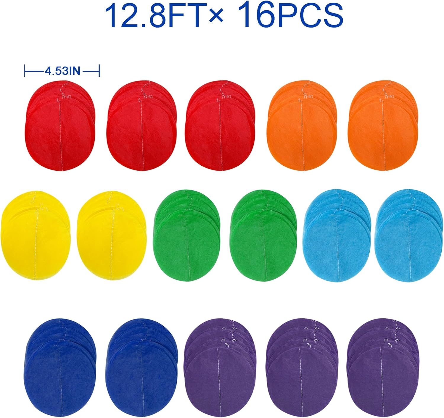 • 🔴PACKAGE CONTAINS- 16 packs of rainbow circle dot party garland banner,Each string is 12.8 feet/3.9 meters with 30 pcs polka dots, Total is 62.4 meters/205 feet.
