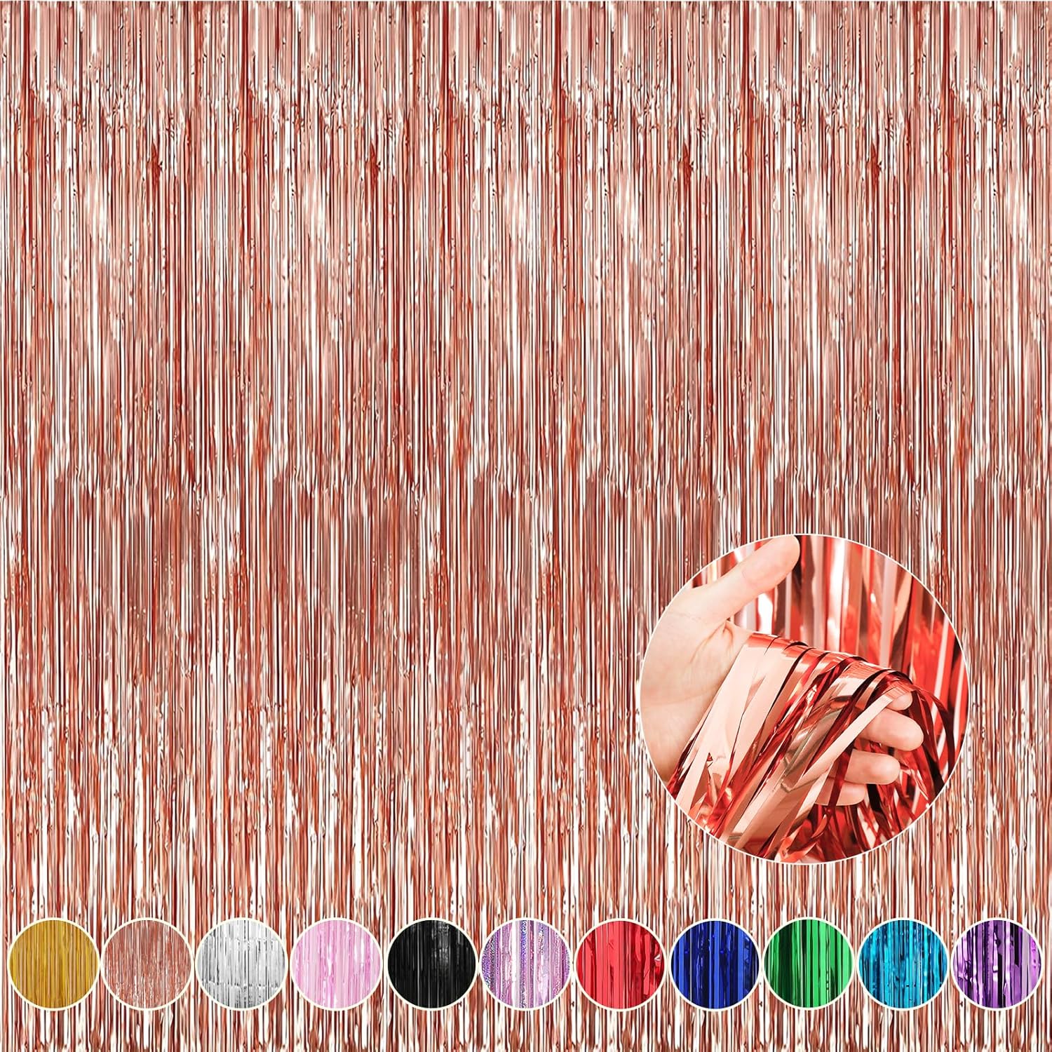 Crosize 4 Pack 3.3 x 9.9 ft Rose Gold Foil Fringe Backdrop Curtain, Streamer Backdrop Curtains, Streamers Birthday Party Decorations, Tinsel Curtain for Parties, Photo Booth Backdrops, Party Décor