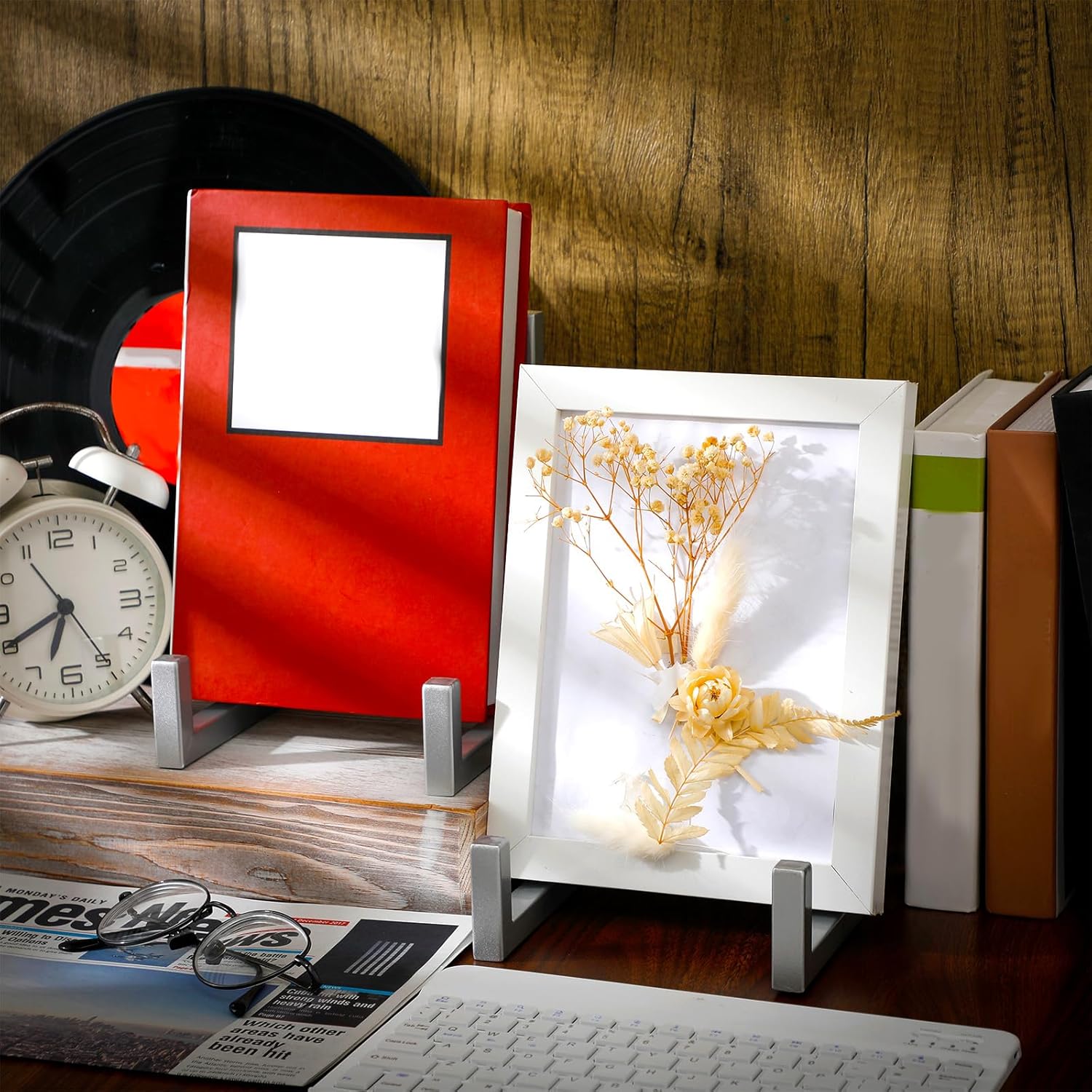 • Industrial Style: as you can see in the pictures, our picture frame holder stand comes in silver color, presenting a modern and industrial visual effect; Meanwhile, they adopt geometric lines and shapes, smooth and simple, adding a sense of aesthetic beauty to your tabletops and shelves
