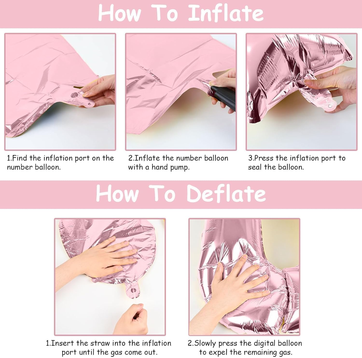 • 🎉 Repeated Use 🎉 - The pastel pink number 9 balloons set contains a straw that can be used to deflate the foil balloon, simply insert the straw into the valve and press gently until the gas is completely expelled. After use, it can be folded and stored for reuse.