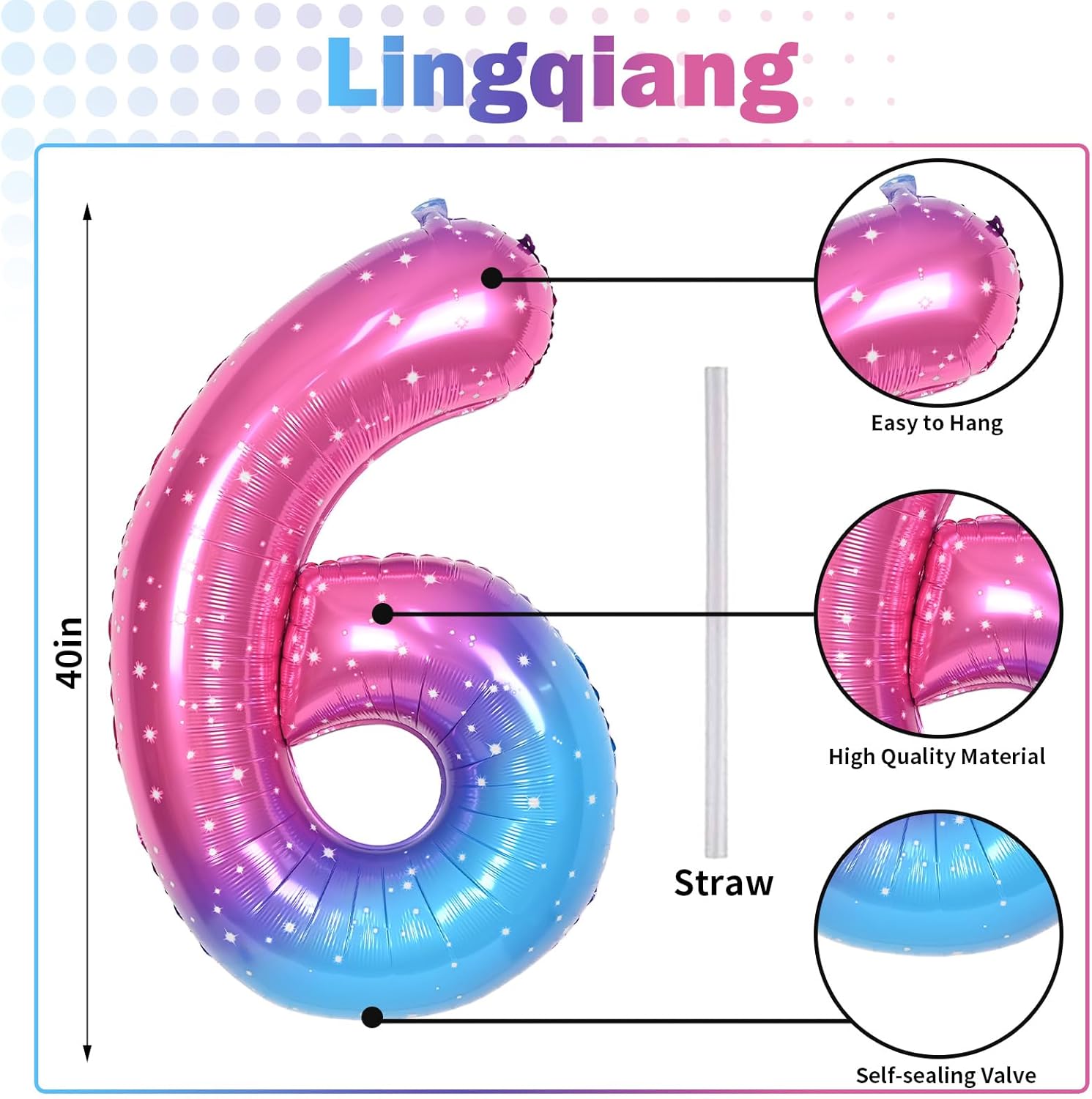 • 🎉 Gradient Rainbow Number 6 Balloon 🎉 - You will get 1pc 40 inch mylar foil pink blue starry number 6 balloon and 1pc straw. Perfect for 6th 16th 26th 60th 65th birthday or anniversary party decorations supplies.