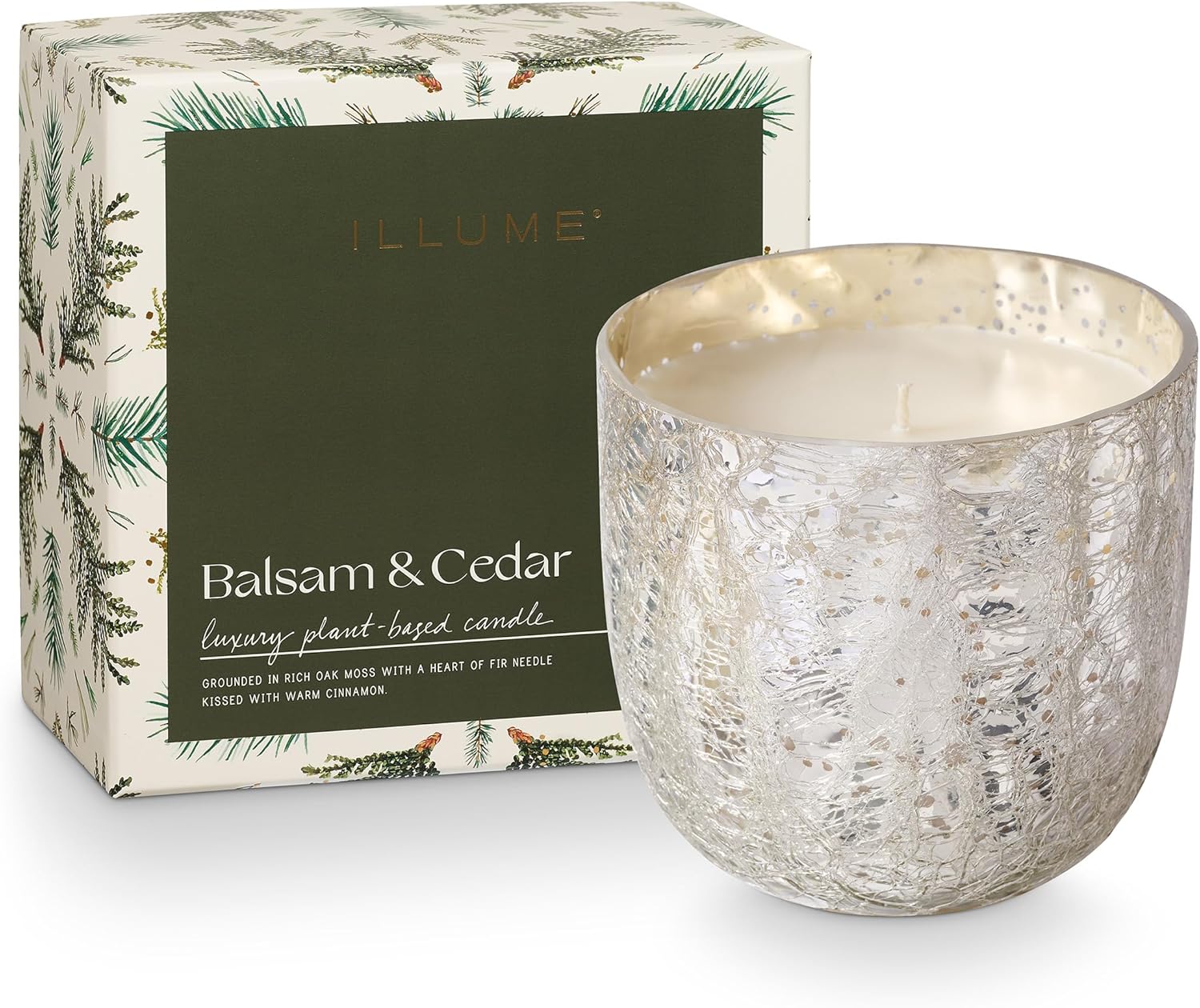 ILLUME Large Boxed Crackle Glass Candle, Balsam & Cedar
