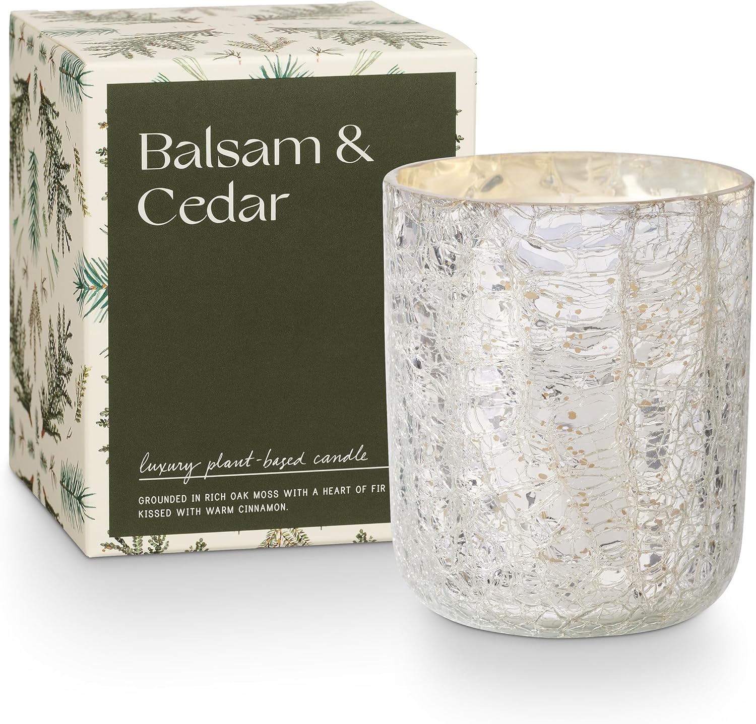 ILLUME Small Boxed Crackle Glass Candle, Balsam & Cedar