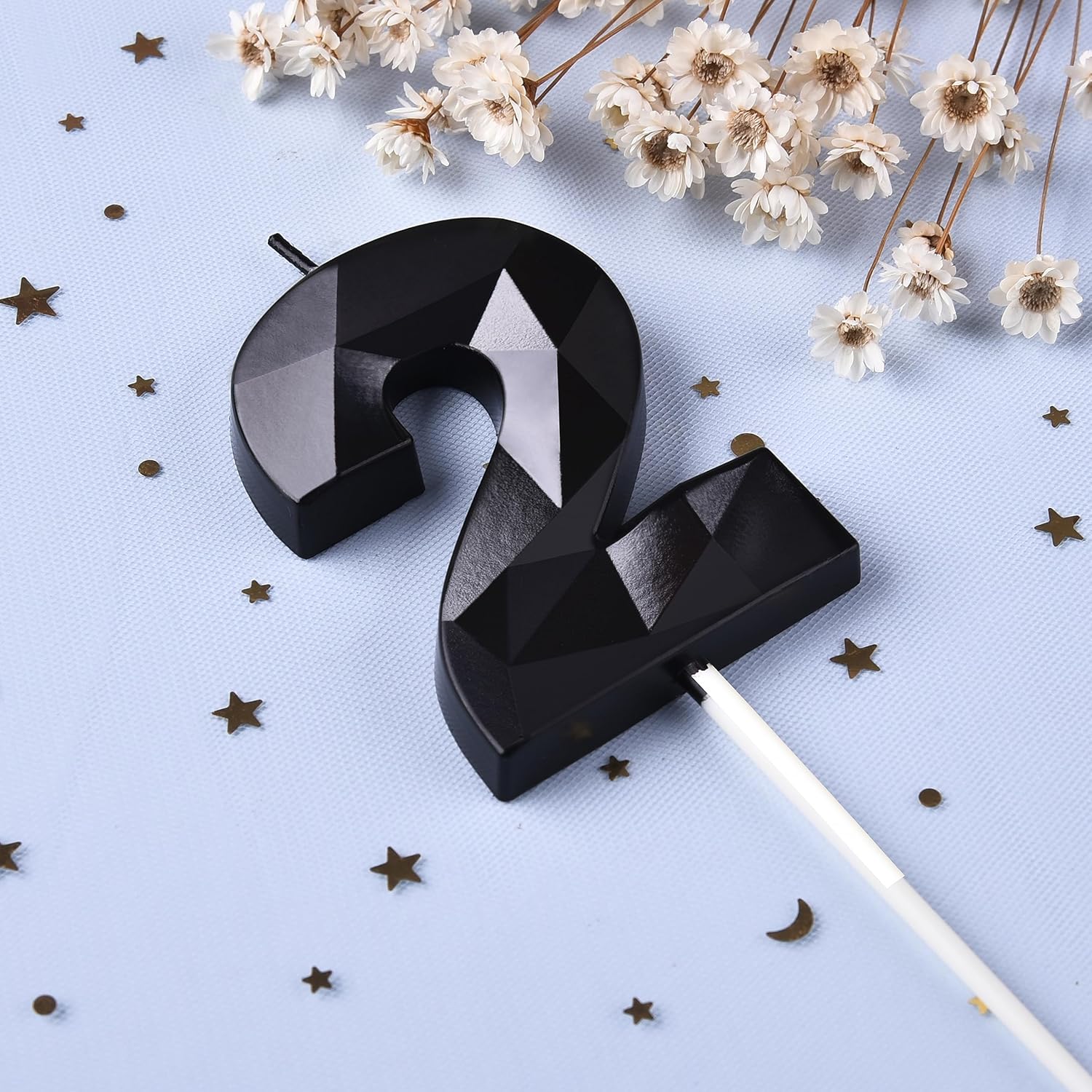 • New: 2.76 Inch Large Crystal Black 2 Number Birthday Candle designed to make your cake and birthday a unique and truly inspiring event.