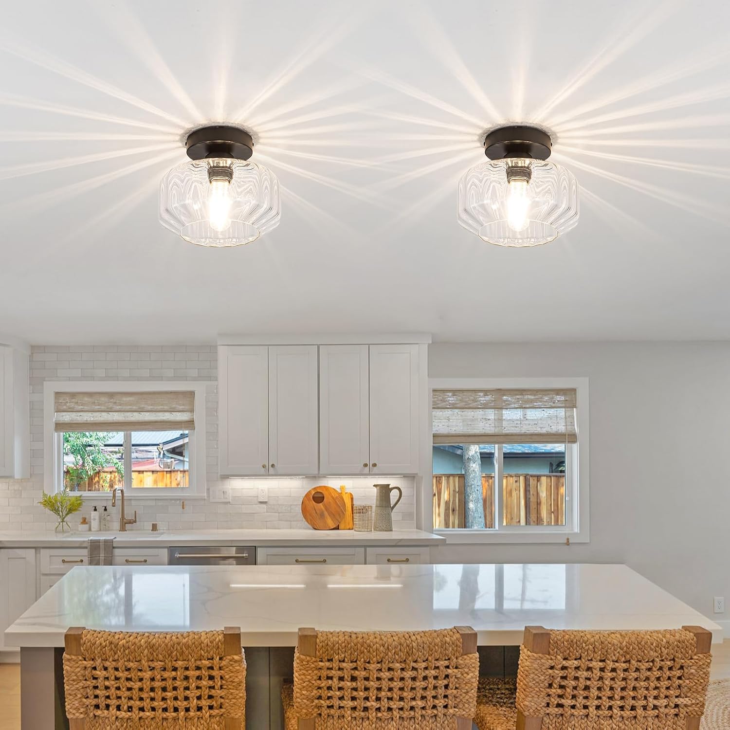 • ๐Ÿ”ง Easy Install & Low Maintenance: Simple installation makes setup a breeze. Easy-to-clean clear glass shade and wide accessibility simplify bulb changes (E26 base compatible). Ideal size flush mount (8.66"L x 4.72"W) fits perfectly in entryways, halls, foyers, or dining rooms.