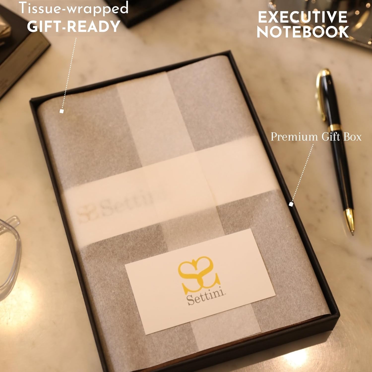SETTINI Journal Notebook for Writing, Vegan Leather Hardcover Notebook - Pen loop, Back Pockets & Lay-Flat design, 120 GSM A5 College ruled Bleed free Paper, Gift Set for Men and Women, Mocha Brown - Birthday Gift