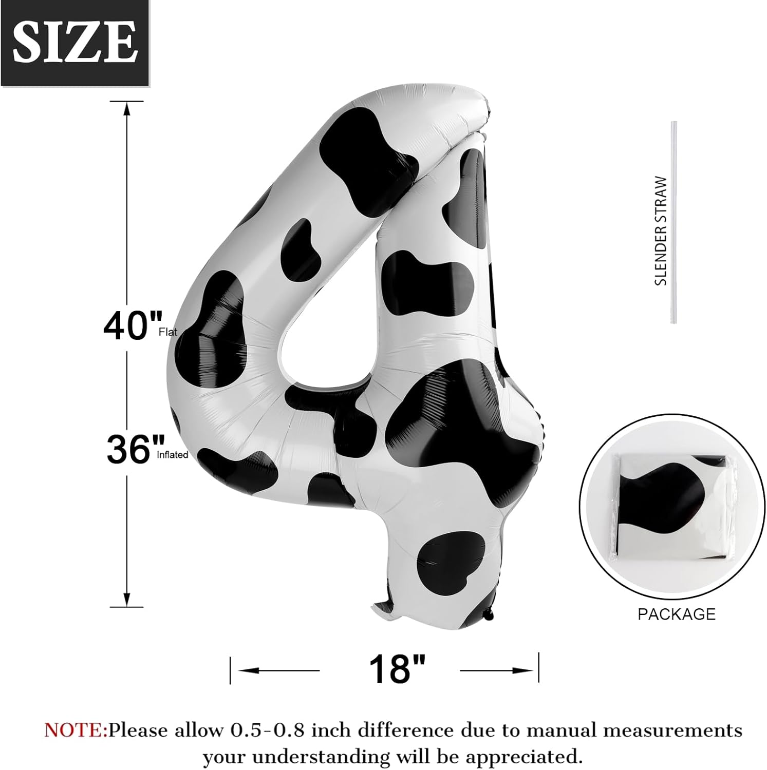 • 【Cow Print Number Balloon】- The package includes number balloons (uninflated) and a straw. You can purchase additional cow numbers to combine into any number you want. The cow print number balloon will be perfect for your kids party, whether it's throwing a cowboy themed party, farm themed party, or any birthday party. Add lots of whimsy to your decor!