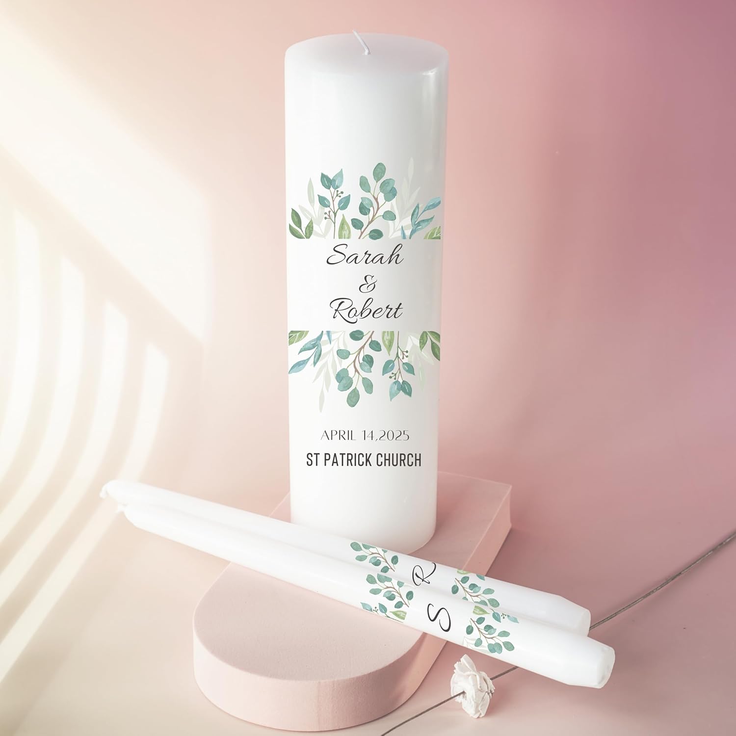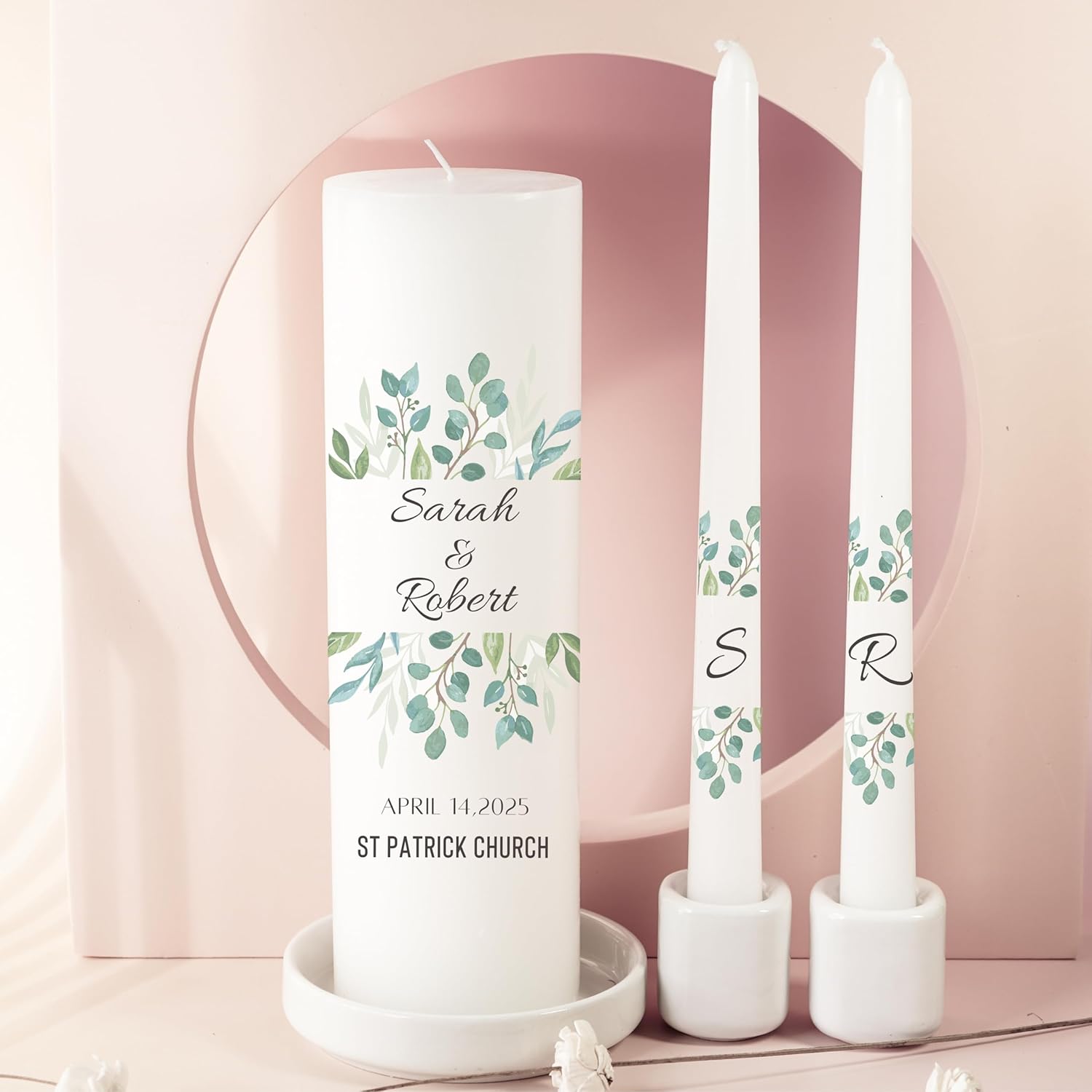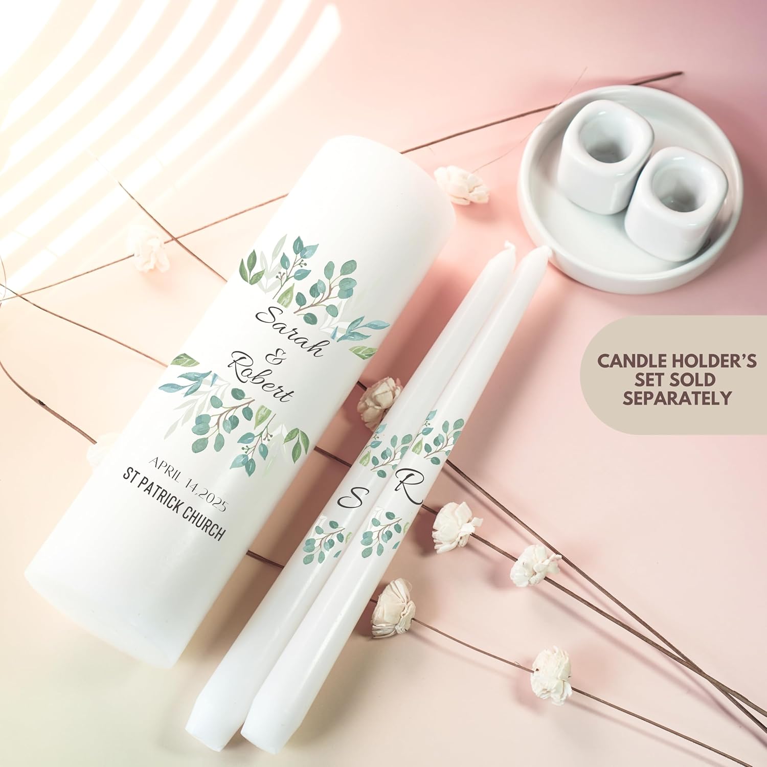 Unity Candles for Wedding, Modern Unity Set, Custom and Personalized Pillar and Taper Candles, Unscented White Premium Wax, Religious and Wedding Ceremony, Special Events (Olive)