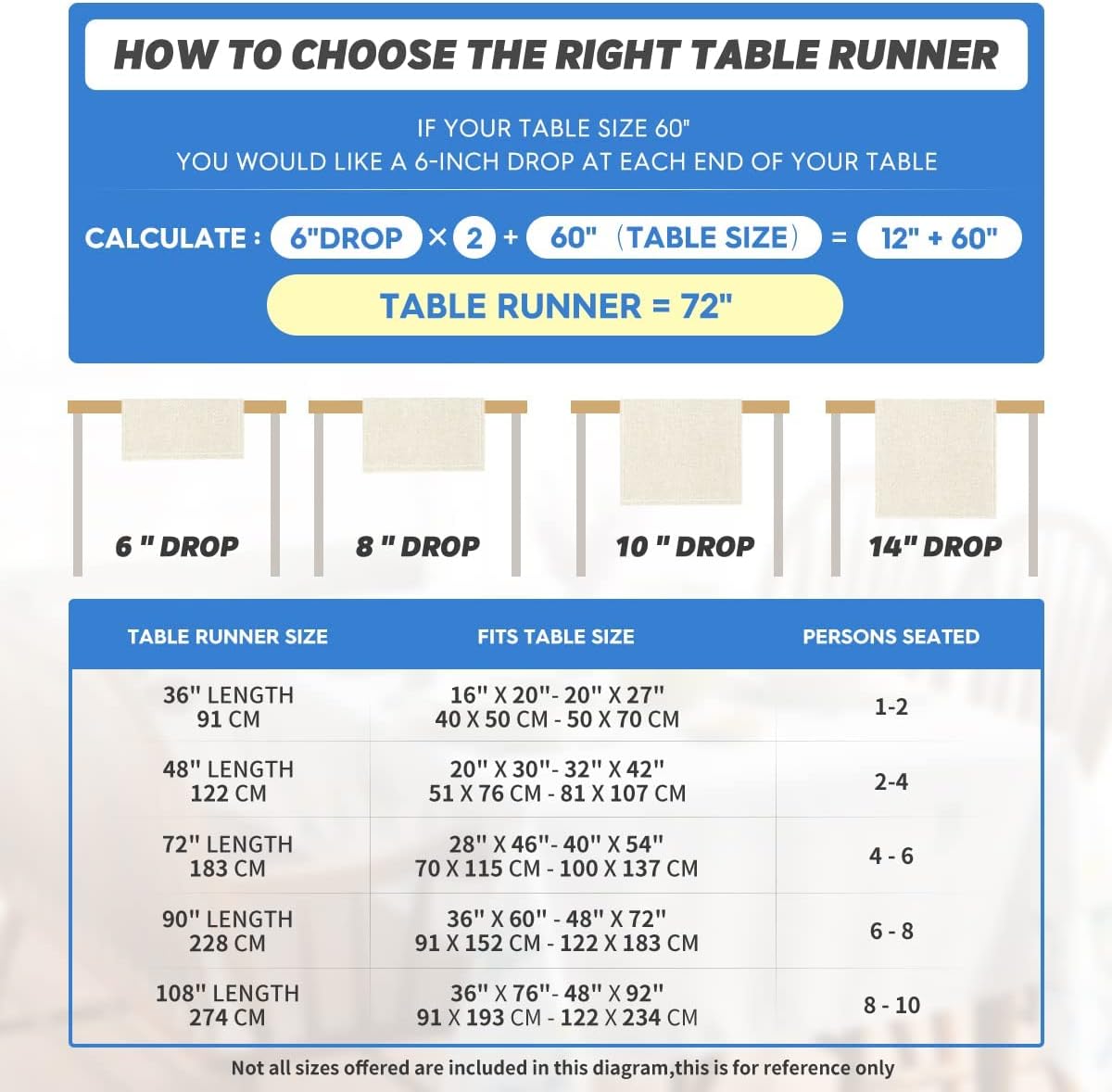 • Fits Table Size : This table runner is 13 x 72 inch, appropriate for a table that can seat 4-6 people, better match your table and give you a delightful dining experience