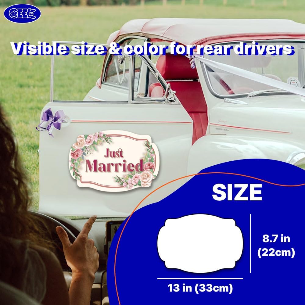 • 【Lovely Wedding Magnets】 - Crafted with high-quality magnet material, our "Just Got Married" magnets feature a charming design that instantly captures attention, adding sweetness to your wedding car and creating a memorable atmosphere. Choose these high-quality and special magnets for your special day! [ 2 Pack l Size: 13inch (33cm) x 8.7inch (22cm)]