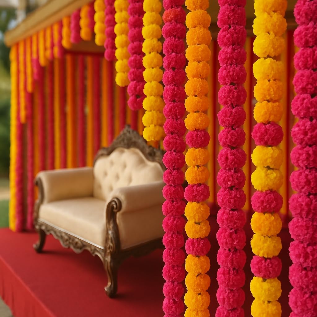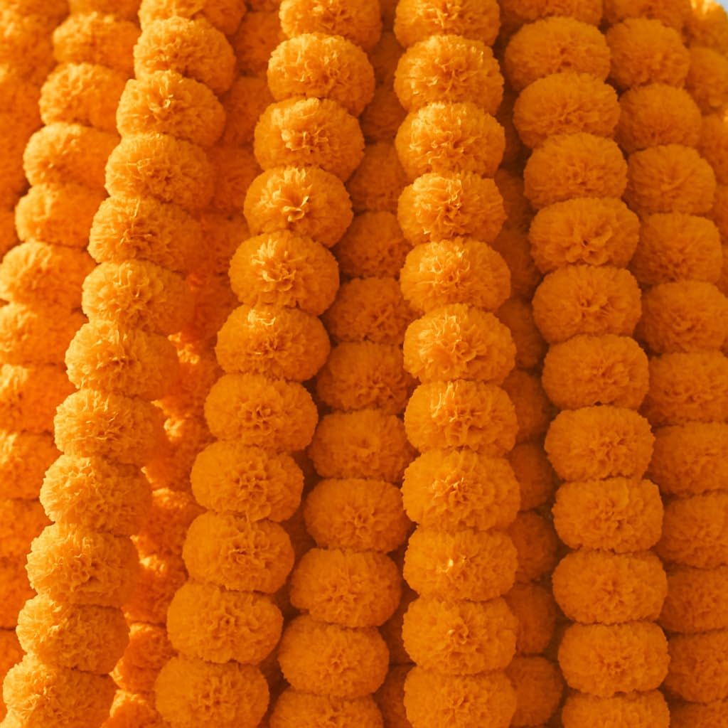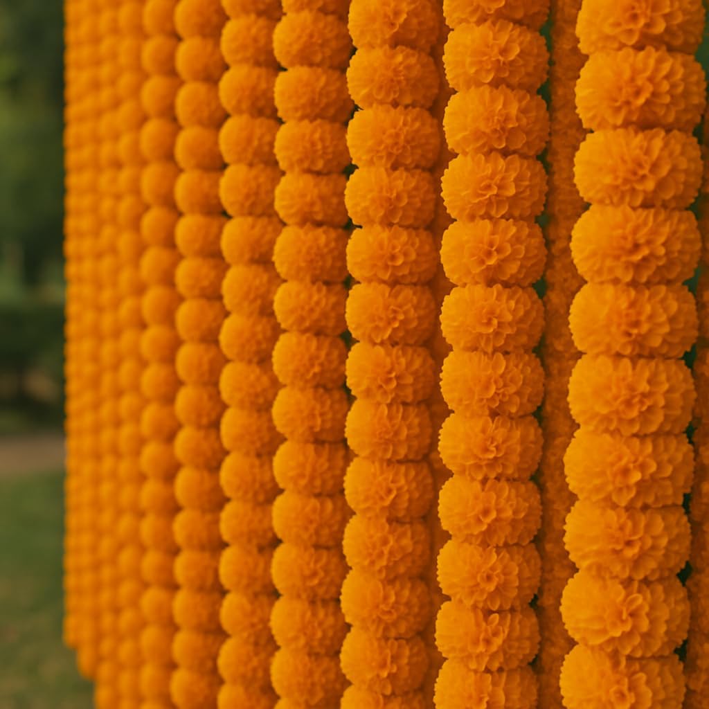 Marigold Garlands for Decorations - Wedding, Halloween, Day of The Dead Pack of 5 - Indian Decor for Pooja, Flower Garland for Decoration (4 to 4.5 Ft) Hashcart®