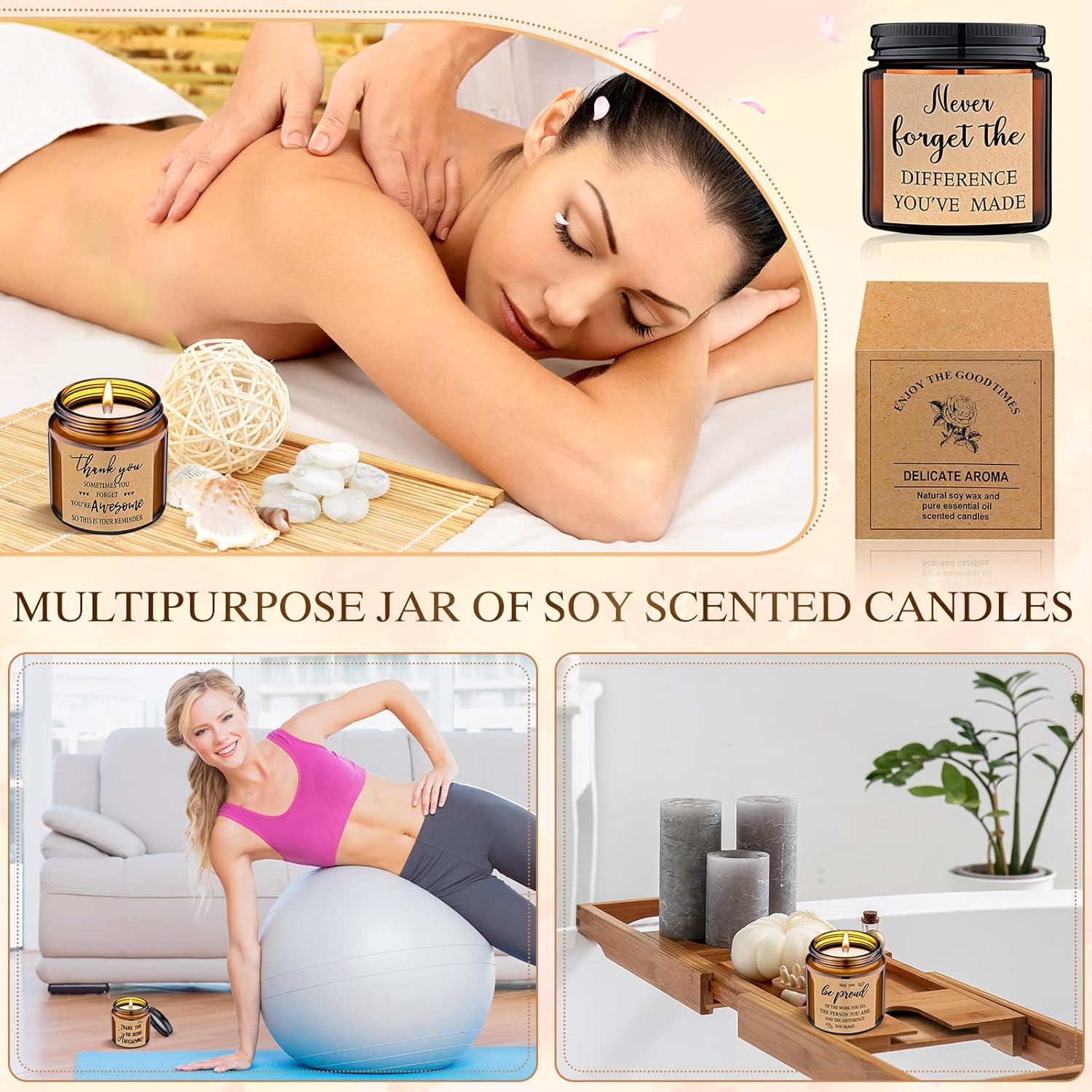 • Warm Design for Your Loved One: the brown bottle of our scented decorative candles is printed with words such as [Thank you for being awesome], [So Grateful For you], [Never Forget The Difference you made], inspirational to express your care and blessings, suitable for administrative assistants, colleagues, employees, teachers, colleagues, family members, etc., on Valentine's Day, Christmas, birthday, retirement, graduation and other occasions