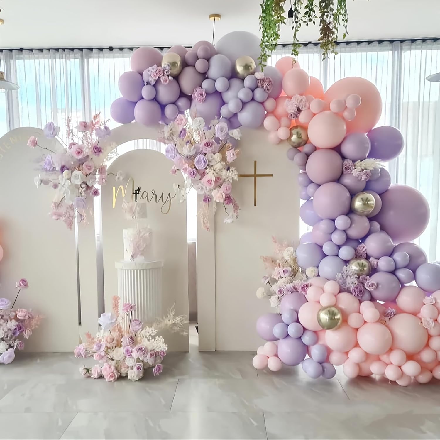 • PASTEL PURPLE BALLOON ARCH GARLAND KIT: Includes 412 pastel purple Balloons, 18inch 12pcs, 12inch 100pcs, 10inch 100pcs, 5inch 200pcs , 2 rolls of Balloon glue point(200pcs), 2 rolls of balloon decoration strip(32.8 feet / 5m*2 with 220 holes), 2 roll of ribbon. plenty in quantity, perfect for making indoor or outdoor them decoration.