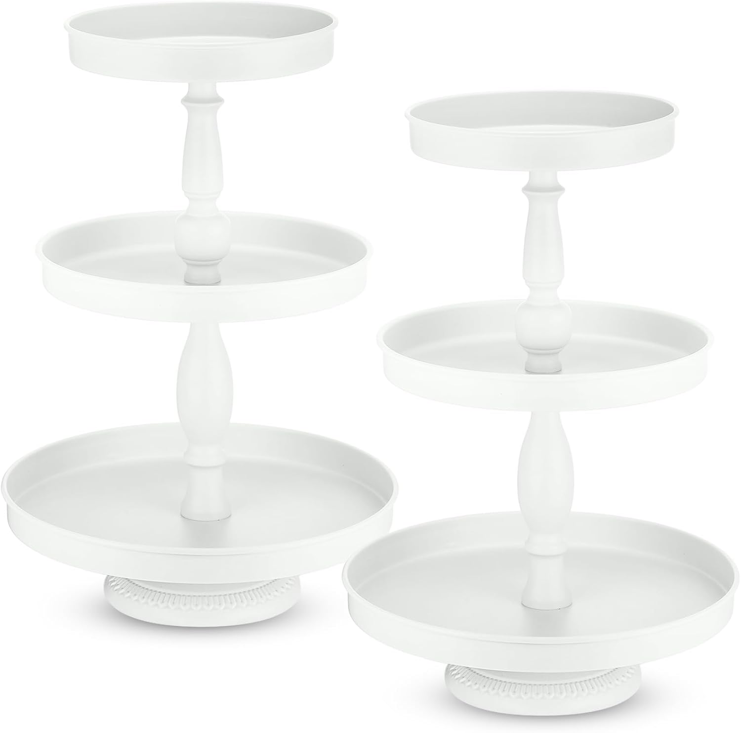 Maxdot 2 Pcs 3 Tier Cupcake Stand Holder, Round Cupcake Stand Serving Tray, Metal Tiered Tray Pastry Dessert Cake Tower Display Stand for Baby Shower Tea Party, Wedding and Birthday (White)