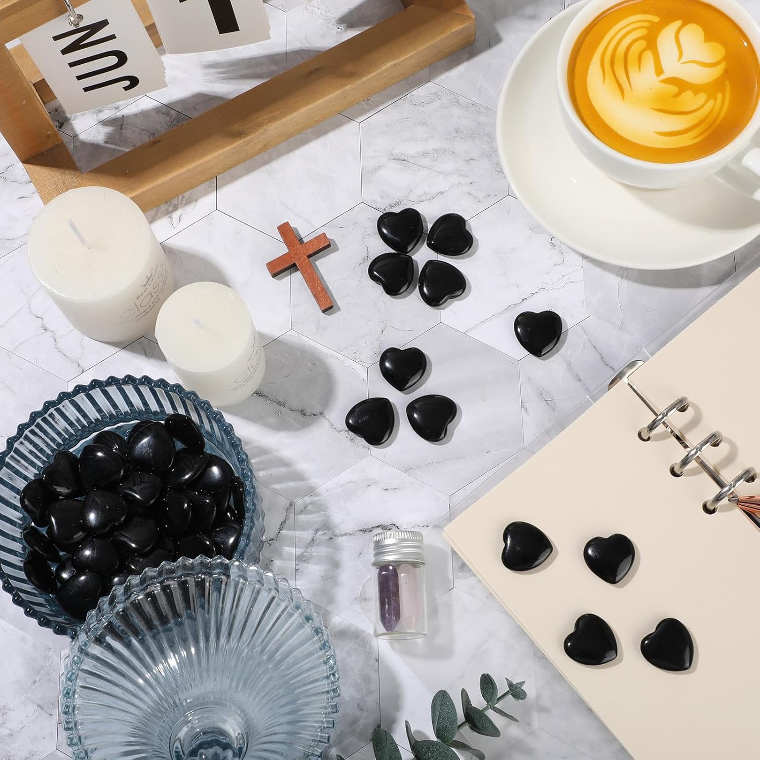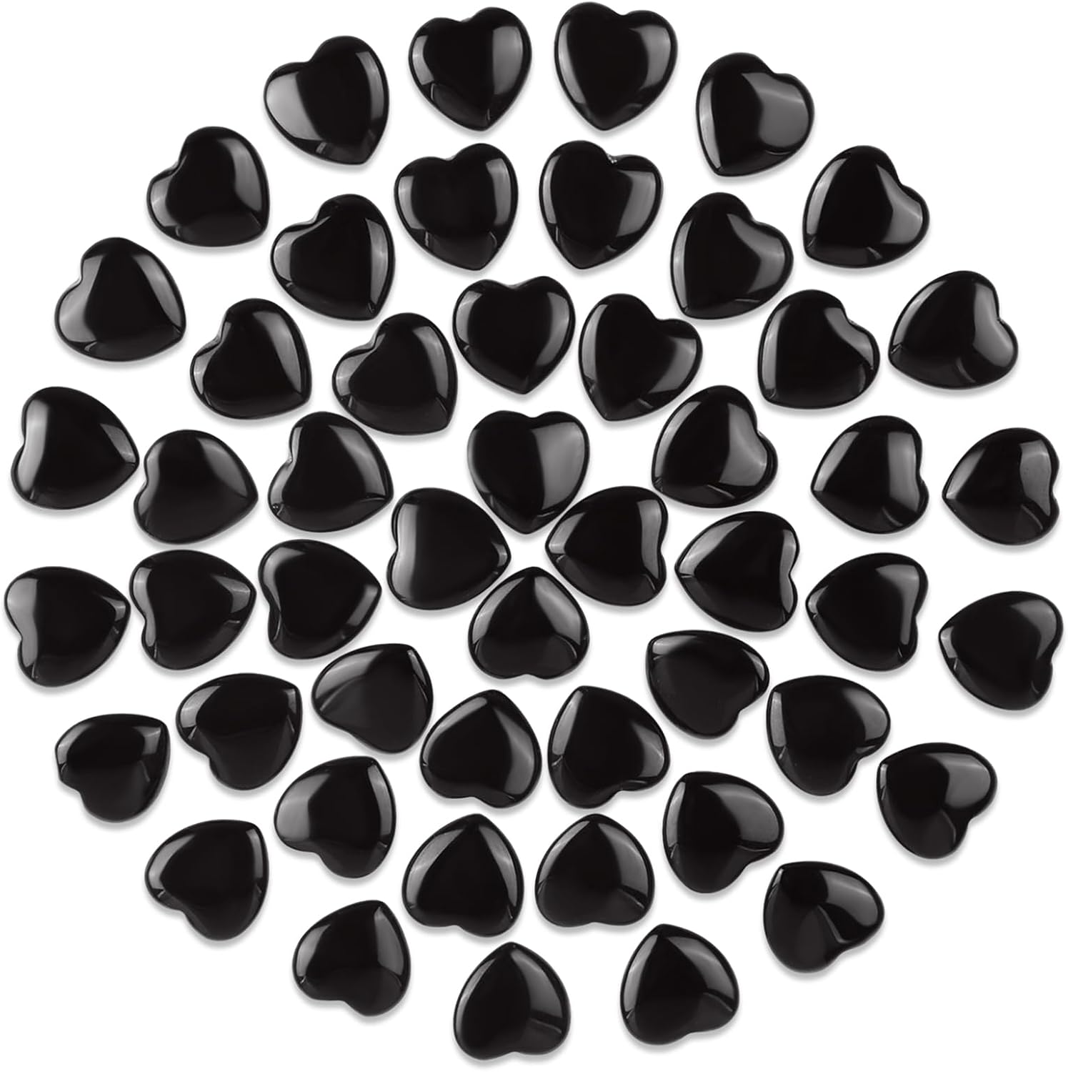 Gerrii 50 Pcs Heart Healing Stone Bulk Quartz Heart Inspirational Stones Gift for Women Love Pocket Polished Natural Energy Balancing Meditation 0.8 Inch(Black)