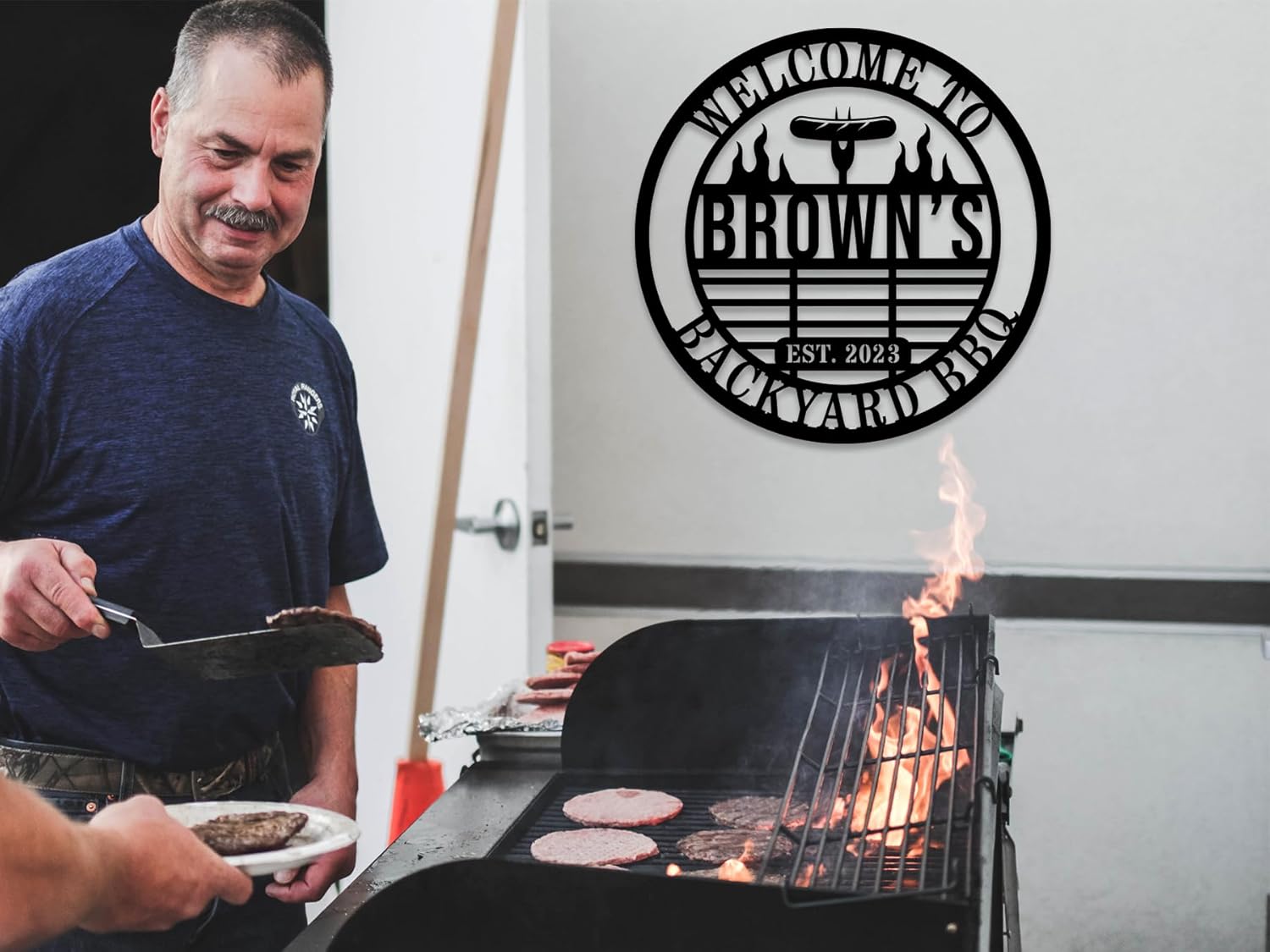 Personalized BBQ Grill Name Sign Custom Grill Sign Outdoor Kitchen Decor Grill Gifts for Dad Backyard BBQ Metal Sign BBQ Grill Sign Barbecue Outdoor Man Cave Decor