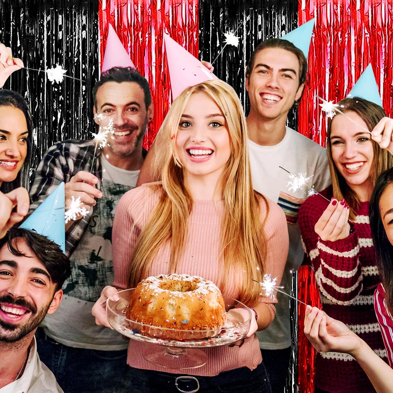 3 Pack Black Red Foil Fringe Curtain Backdrop, 3.28Ft x 8.2Ft Metallic Tinsel Foil Fringe Streamer Curtains for Photo Booth, Christmas Day, Thanksgiving, Wedding, New Year Party Decorations
