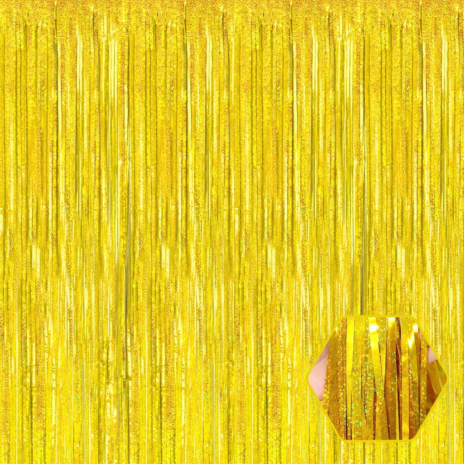 3 Pack Gold Foil Fringe Curtain Backdrop, 3.28Ft x 8.2Ft Metallic Tinsel Foil Fringe Streamer Curtains for Photo Booth, Mother's Day, Easter, Birthday, Wedding Party Decorations