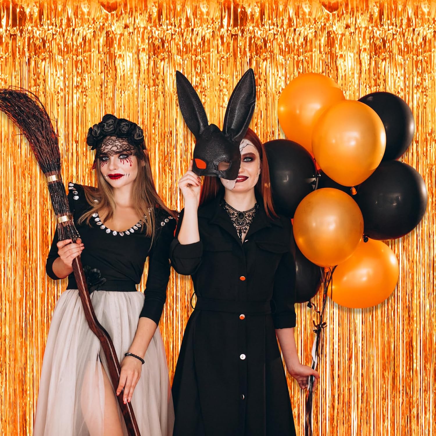 3 Pack Orange Foil Fringe Curtain Backdrop, 3.28Ft x 8.2Ft Metallic Tinsel Foil Fringe Streamer Curtains for Photo Booth, Mother's Day, Easter, Birthday, Wedding Party Decorations