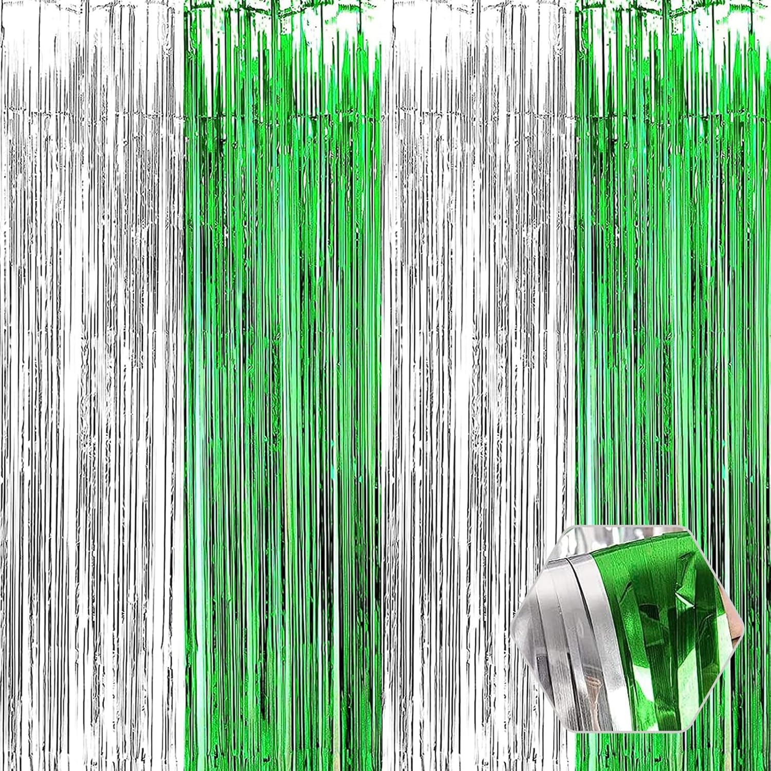 3 Pack Silver Green Foil Fringe Curtain Backdrop, 3.28Ft x 8.2Ft Metallic Tinsel Foil Fringe Streamer Curtains for Photo Booth, Mother's Day, Easter, Birthday, Wedding Party Decorations