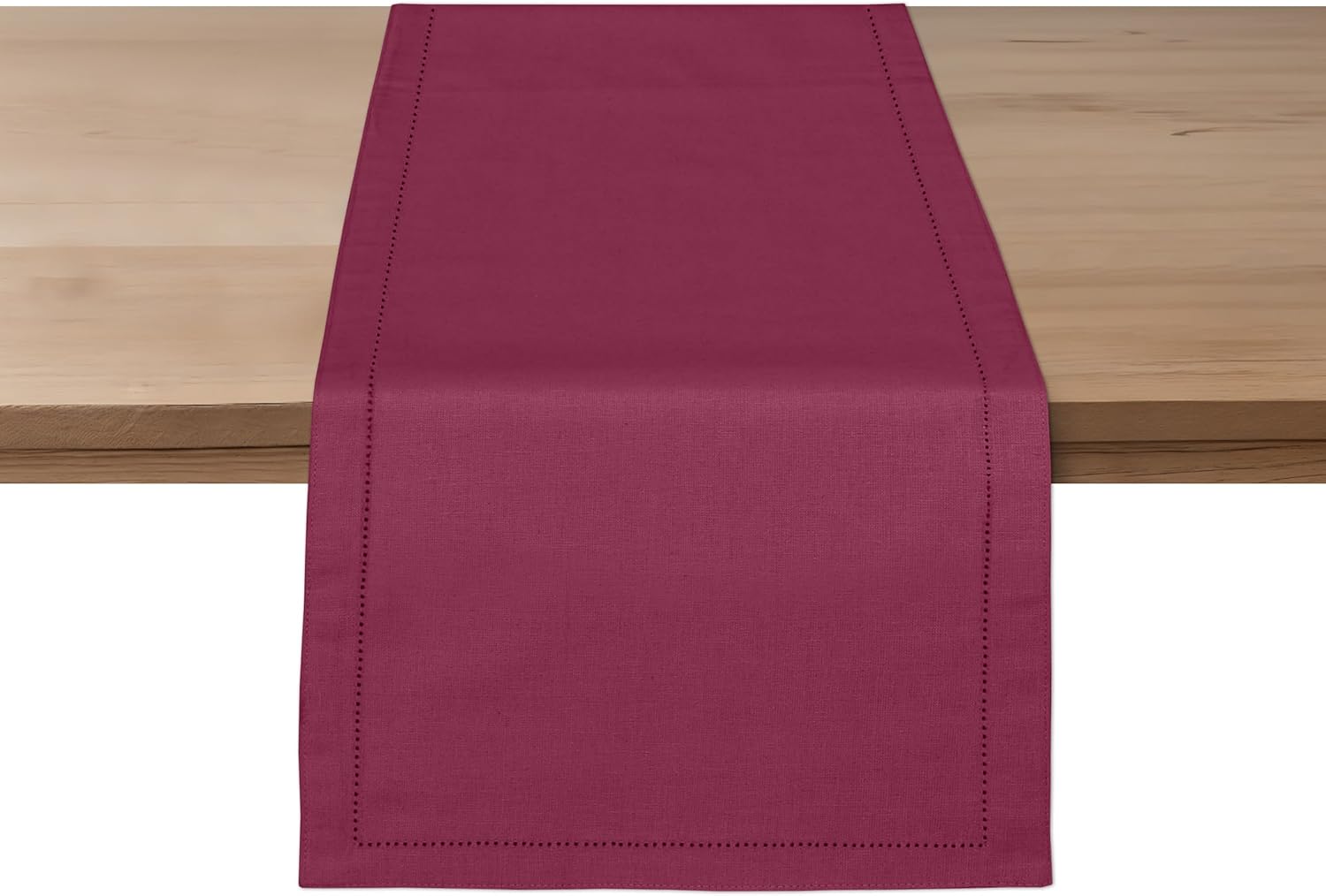 Ruvanti Linen Table Runner 120 Inches, Classic Hemstitch, Washable, Reusable, Non-Slipping, Stain Resistant- Perfect for Parties, Weddings, Dinners, Thanksgiving, Christmas, Indoor use – Burgundy