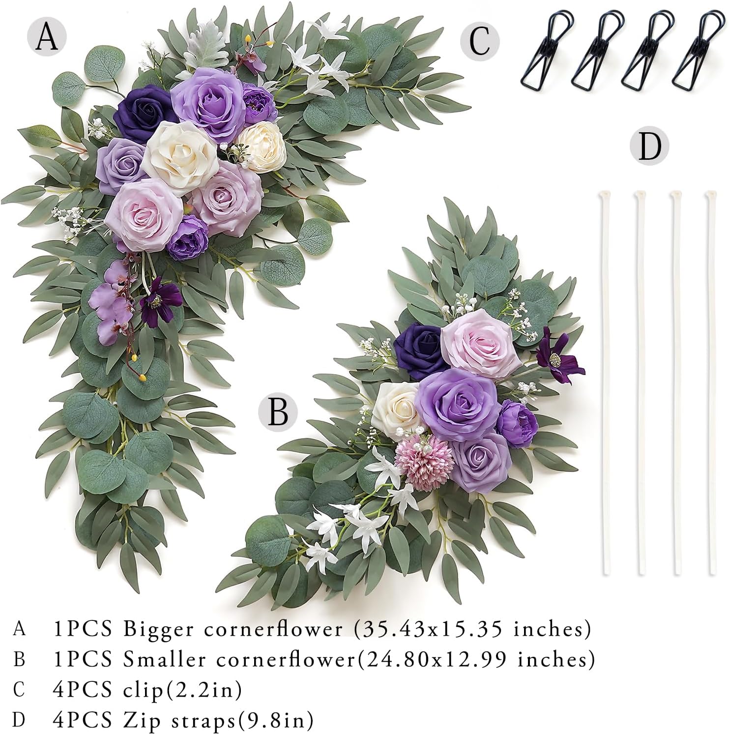 • Size: Large purple flower swag's size is 35.43"L x 14.56"W, Smaller purple flower swag's size is 24.80"L x 12.99"W.