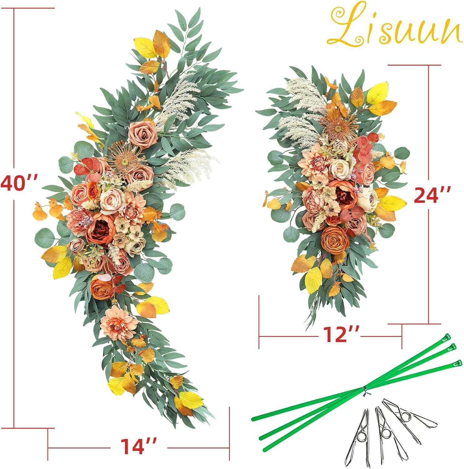 • Enlarged Size:The large flower swag design straightens measures 40" long x 14" wide(100*35cm), small flower tie measures 24" long x 12" wide(60*30cm),the larger size contains more flowers and decorations, let your wedding ceremony more colorful atmosphere.