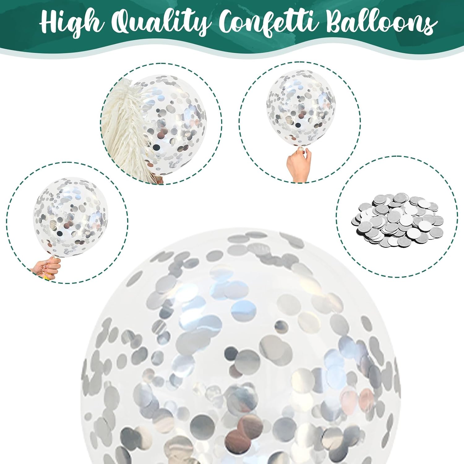 • 🎉 Easy to Use - The teal blue green and silver balloons support both air and helium. You can blow them up with a mouth, pump or helium. After inflating, shake the confetti balloon and gently rub it with your hair or dry fabric to make the confetti stick to the side of the balloon, which can make the balloon look more beautiful. When the party is over, you can pop the balloons to let the confetti fall, adding fun to the party.