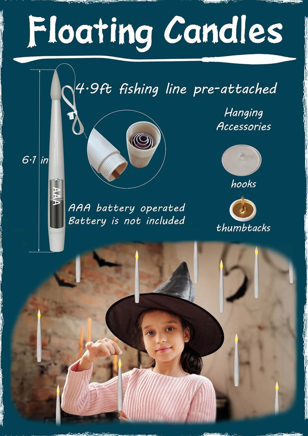 • Indoor decorations: Flickering candles are the perfect addition to your room. You can hang these candles on the ceiling or chandelier to create "floating" candles effect for a Movie Theme party. They also work great for dinner table, fireplace, bedroom, classroom, church service, birthday party, Halloween, Christmas tree decoration.