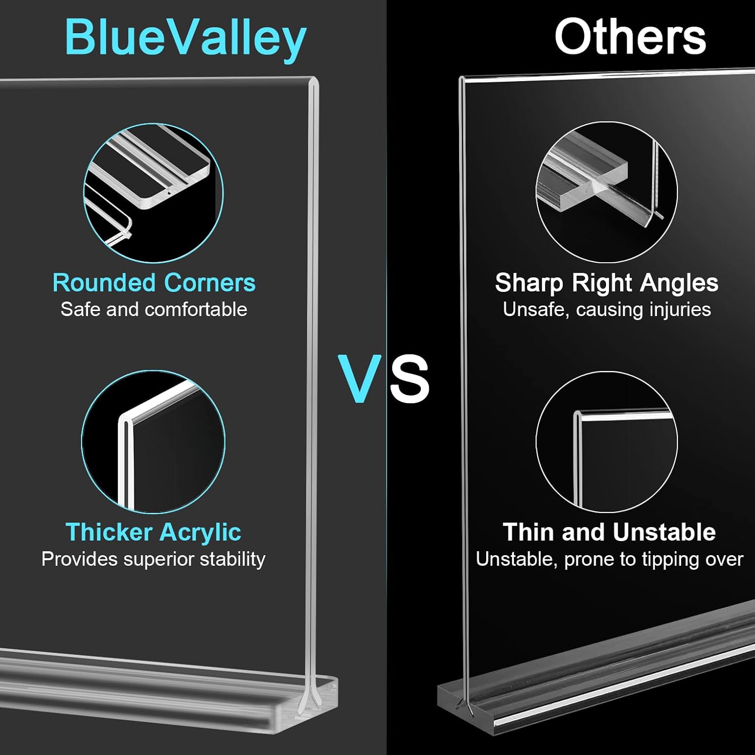 BlueValley Acrylic Sign Holder 8.5 x 11 Vertical - Double Sided Clear Sign Holders Plastic Stands for Display-6 Pack Document Paper Sign Stand for Table Top, Office, Restaurant, Store, Wedding, Party, Show Fairs