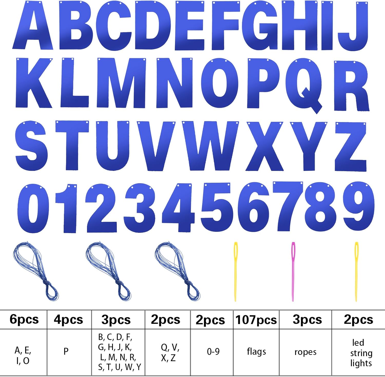TaoBary 112 Pcs DIY Letter Custom Banner Glitter Customizable Banner Kit Including 107 Letters and Numbers 3 Rope for Valentine Birthday Party(Bright Blue)